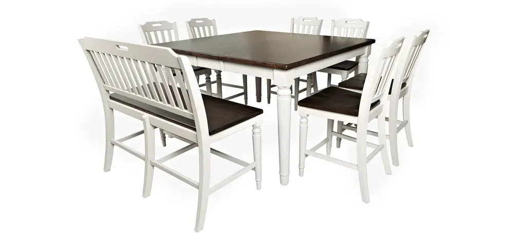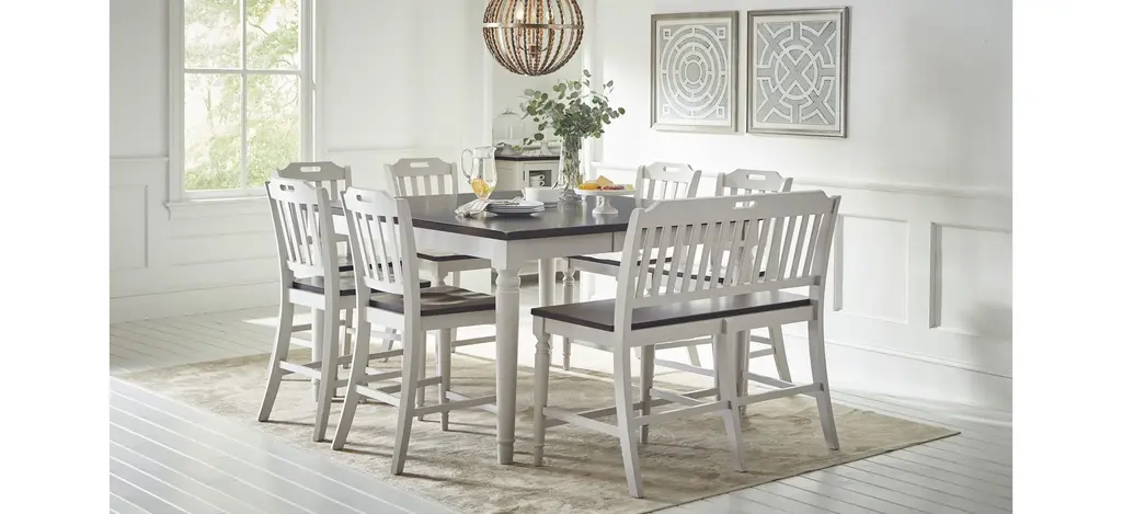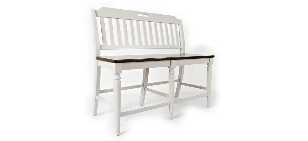 A striking pairing of a rich, dark seat with a soft grey base, the Mount Vernon counter-height dining bench provides inviting seating to you and your guests. Solid wood construction offers the promise to withstand wear and tear - and look good doing it.