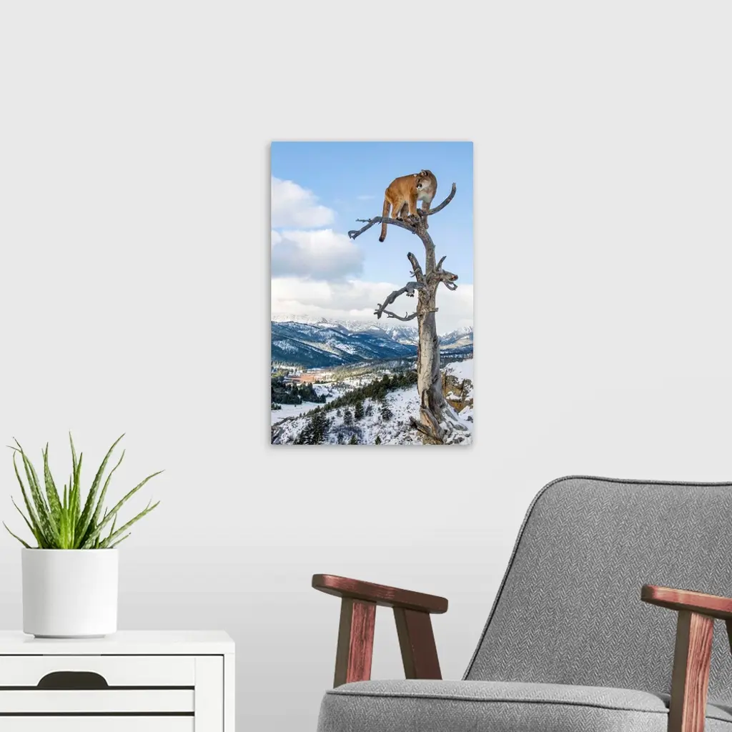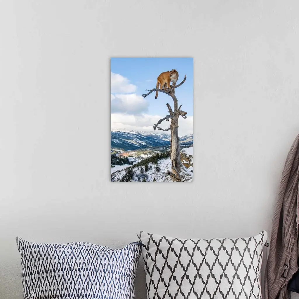 Mountain Lion (Felis concolor) portrait in tree near Bozeman, Montana, USA.