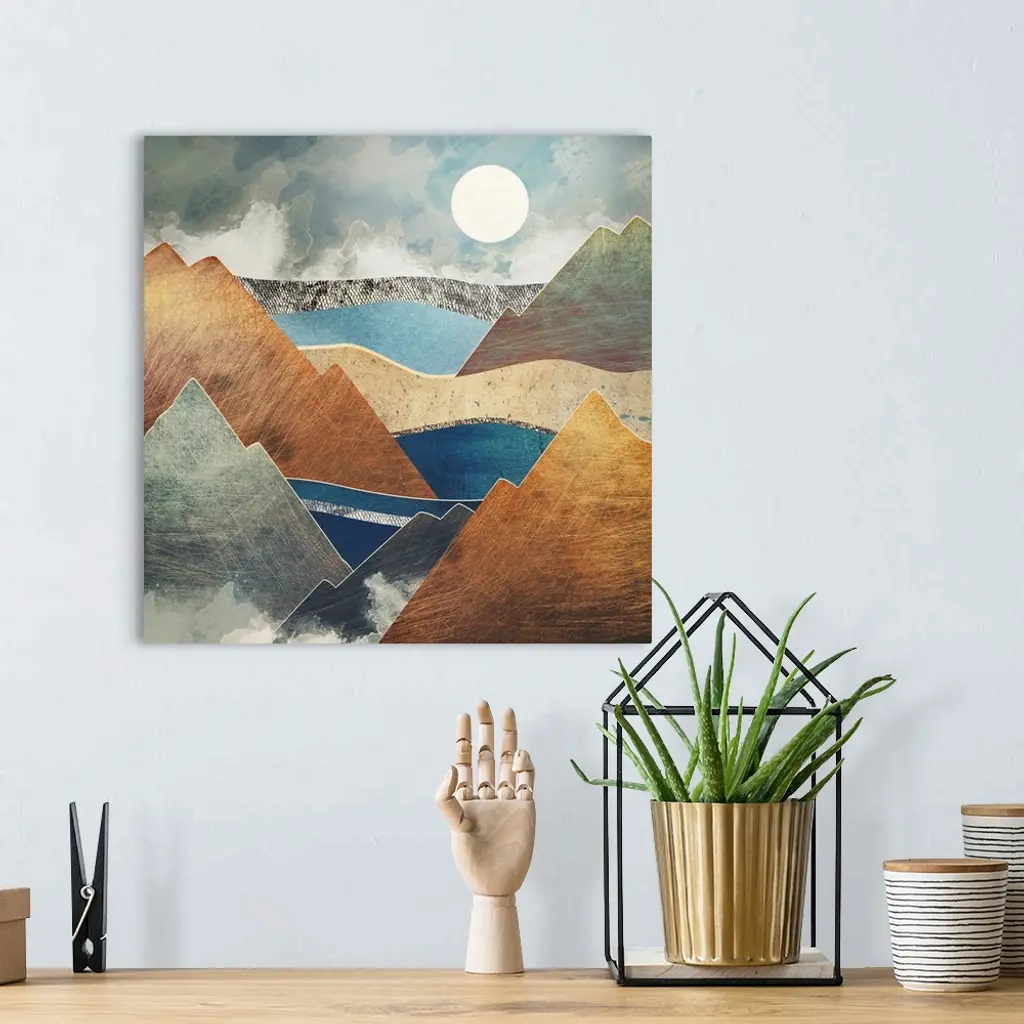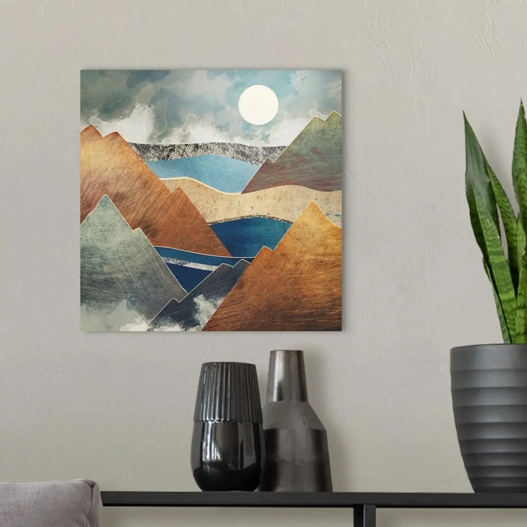 Abstract depiction of a mountain pass with brown, texture, blue and brown.