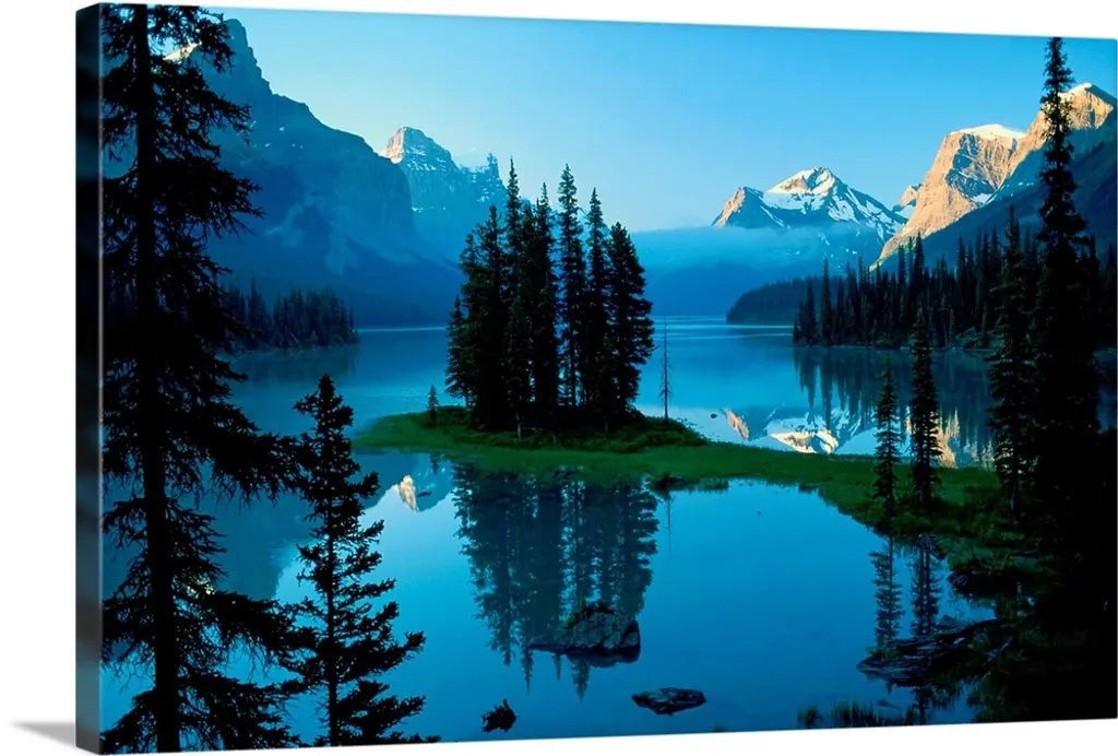 Mountain Range Reflecting In An Alpine Lake With The Glow Of Morning Light, Bc, Canada