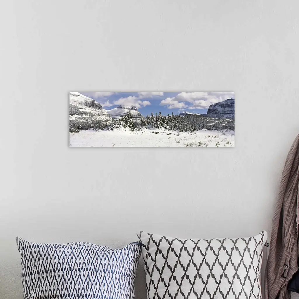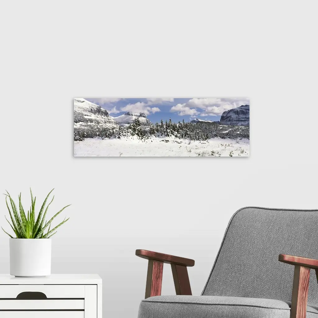 Mountains With Trees In Winter, Logan Pass, Us Glacier National Park, Montana