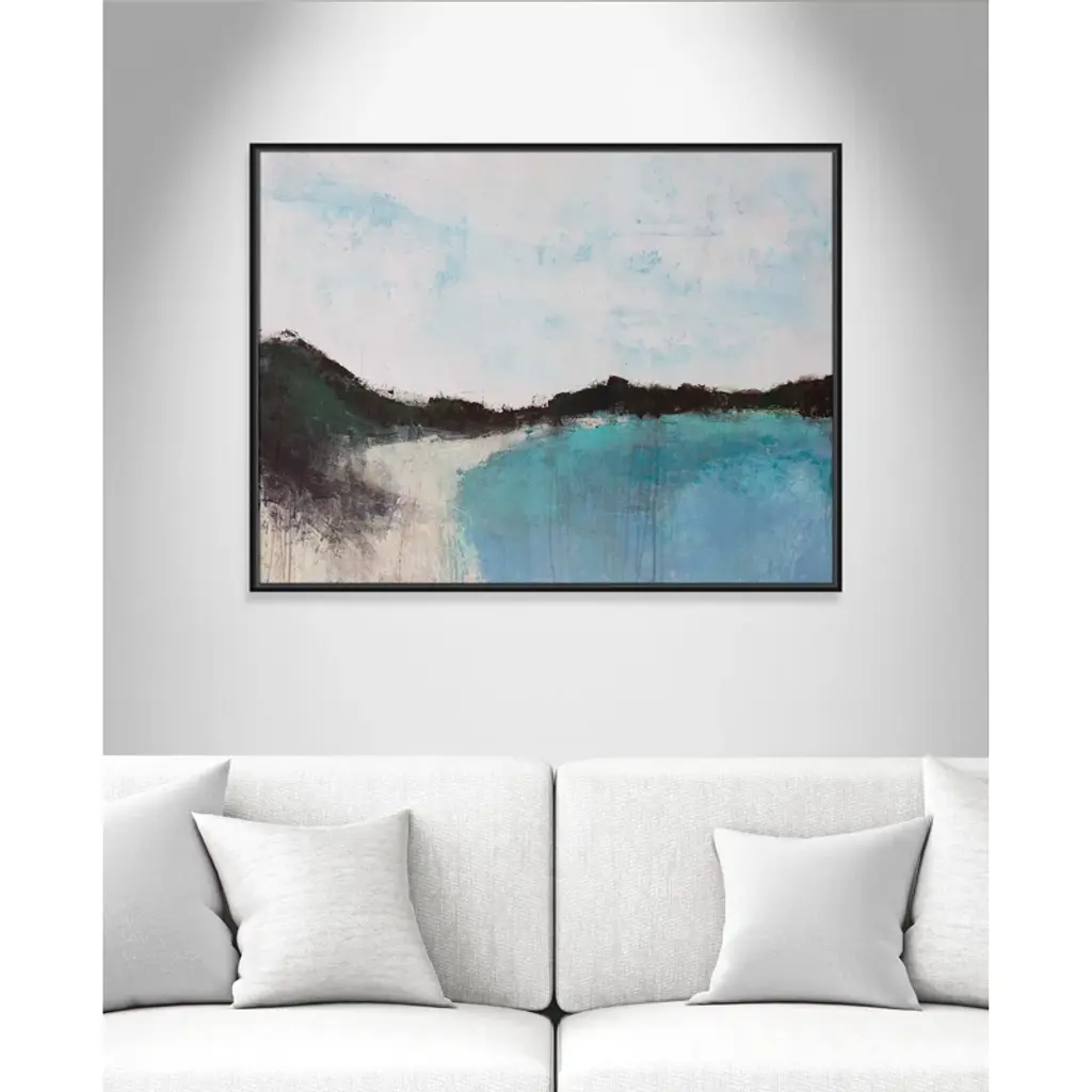 "Mountainside Lakeview" is a breath of fresh air. Masterfully crafted on canvas with a solid wood floater frame, it captures the tranquil beauty of a peaceful lakeside setting. The abstract landscape, created by renowned artist Filippo Ioco, ignites a calming ambiance in any room. Perfect for both residential and non-residential spaces, this single piece of art is a captivating centerpiece that speaks to your love for nature. Plus, it's a giclee print, ensuring a high-quality, vibrant display that will last. Time to elevate your decor game!