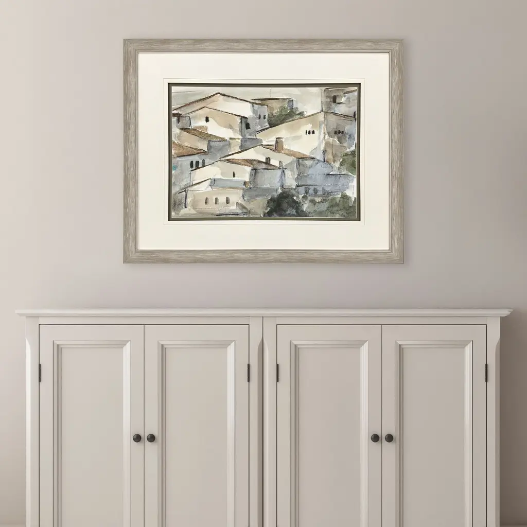 Mountainside Village Gray And Beige And Brown And White Framed Art