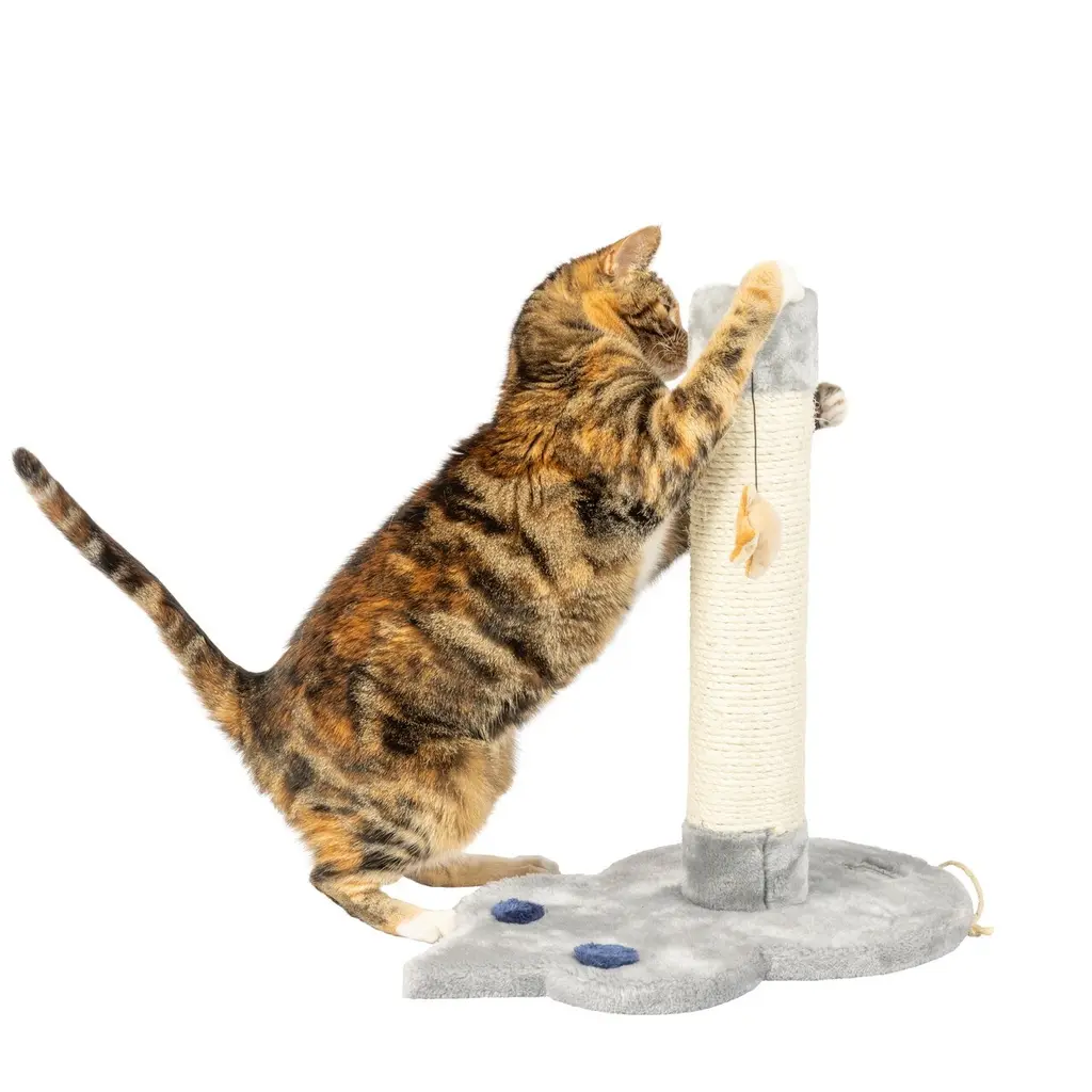 Description :If you cat loves mice, look no further than the Mouse Shape Scratcher. It comes with a mouse shaped base, durable scratching post, and two hanging rope cat toys. Ideal for small cats and fits perfectly into even the smallest homes.Single-pillar scratching post for cats with Toys. Silver Gray cat scratcher ,with high density faux for felines comfort and soft, coverings are permanently adhered to wood structures. Its base is made of pressed wood. Assembling is a snap with tools and step-by-step instructions. 100% natural, seasoned sisal rope wraps all posts securely for years of "scratch." Maximum holding weight is 15 lbs. Product Size: Overall Dimensions: 11"(L)X11"(W)X19"(H) What in Included: Hardware set, Instruction, cat tree Fabric Care: Spot clean Color: Silver Gray