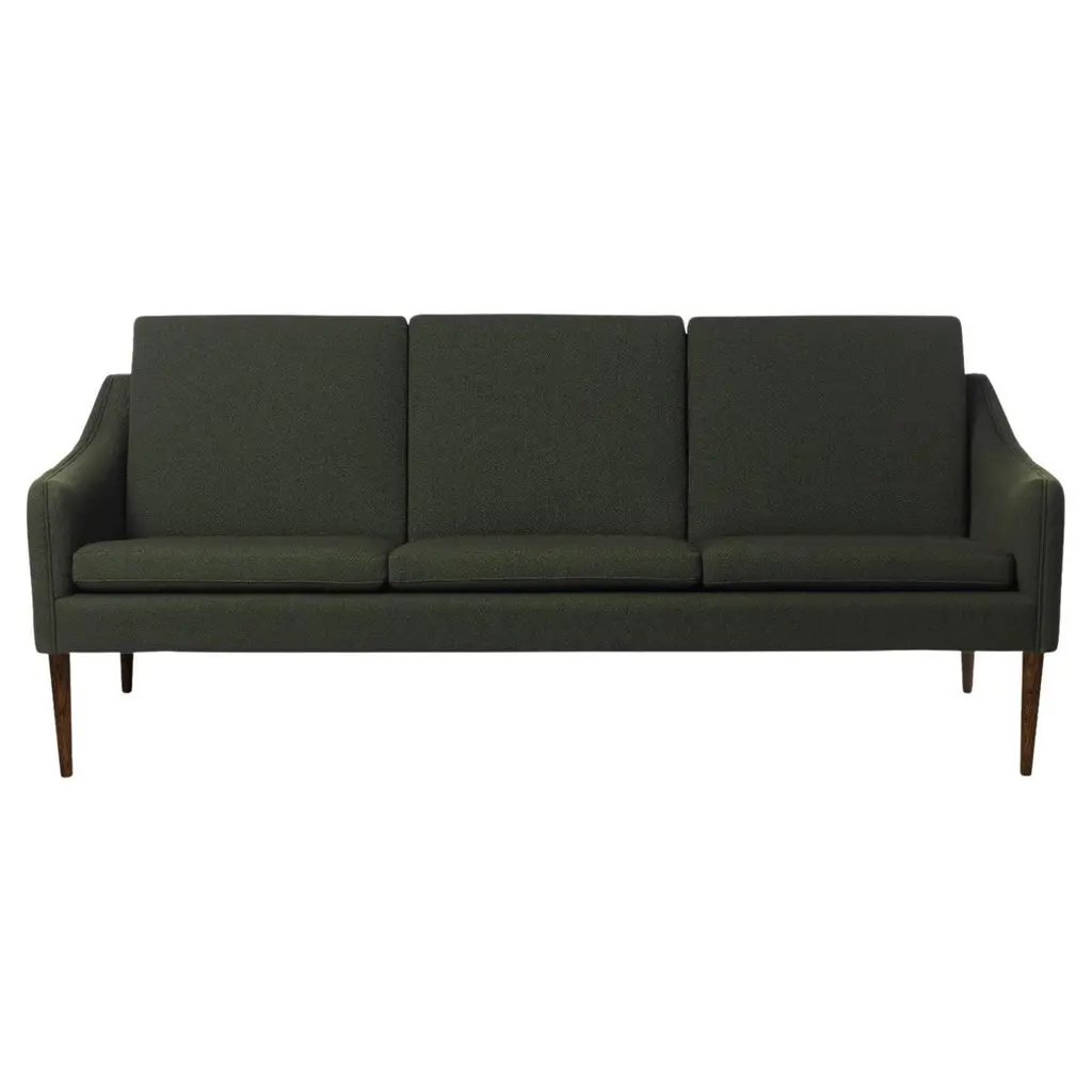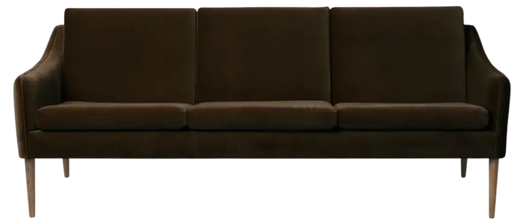 Mr Olsen 3 seater oak java brown by Warm NordicDimensions: D 201 x W 79 x H 78/46 cmMaterial: Textile upholstery, foam, spring system, solid oiled oak legs, Solid smoked oak legsWeight: 50 kgAlso available in different colours and finishes.A classic, sophisticated designer sofa designed in the 1950s by the highly acclaimed Danish architect, Hans Olsen. The sofa is now available in an exclusive anniversary edition with sustainable textiles launched on the occasion of Hans Olsen's 100th anniversary. The Mr Olsen sofa is an original design that is a perfect match for a gentleman's room or a feminine sofa group, in a home office or a holiday cottage: anywhere that classic furniture design makes all the difference. Mr Olsen is both slender and organic with a lightness that is unusual by comparison with other design classics of the period. Mr Olsen's special elegance derives particularly from the soft shapes of the sofa's armrests and the round, tapered legs. The sofa is available both in a classic leather version and a fully upholstered version in beautiful fabrics, including sophisticated velour for a more daring look. Choose from several different exclusive furnishing fabrics from the likes of Kvadrat in a variety of classic colours from the Warm Nordic universe. The frame is available in the highest quality walnut, oiled oak, or smoked oak. The anniversary edition of the Mr Olsen sofa is two-toned with a lively, yet elegant expression covered in two different sustainable fabrics from Kvadrat. The sofa comes in a light purple version in Re-wool from Kvadrat and a peach version in Merit by Maharam, both of which excel in sustainability, sensuosity and quality. The frame on the anniversary sofa is constructed of FSC-certified wood.Warm Nordic is an ambitious design brand anchored in Nordic design history and with a timeless, aesthetic style that inspires you to appreciate the little things in life. The company is the result of several years’ intense work on developing a new design brand with design history, quality and personality at its core. Warm Nordic boasts a colourful and charming universe of furniture, lamps and accessories full of personality. Our designs encapsulate the Nordic spirit, which in its essence is timeless, inclusive and warm.