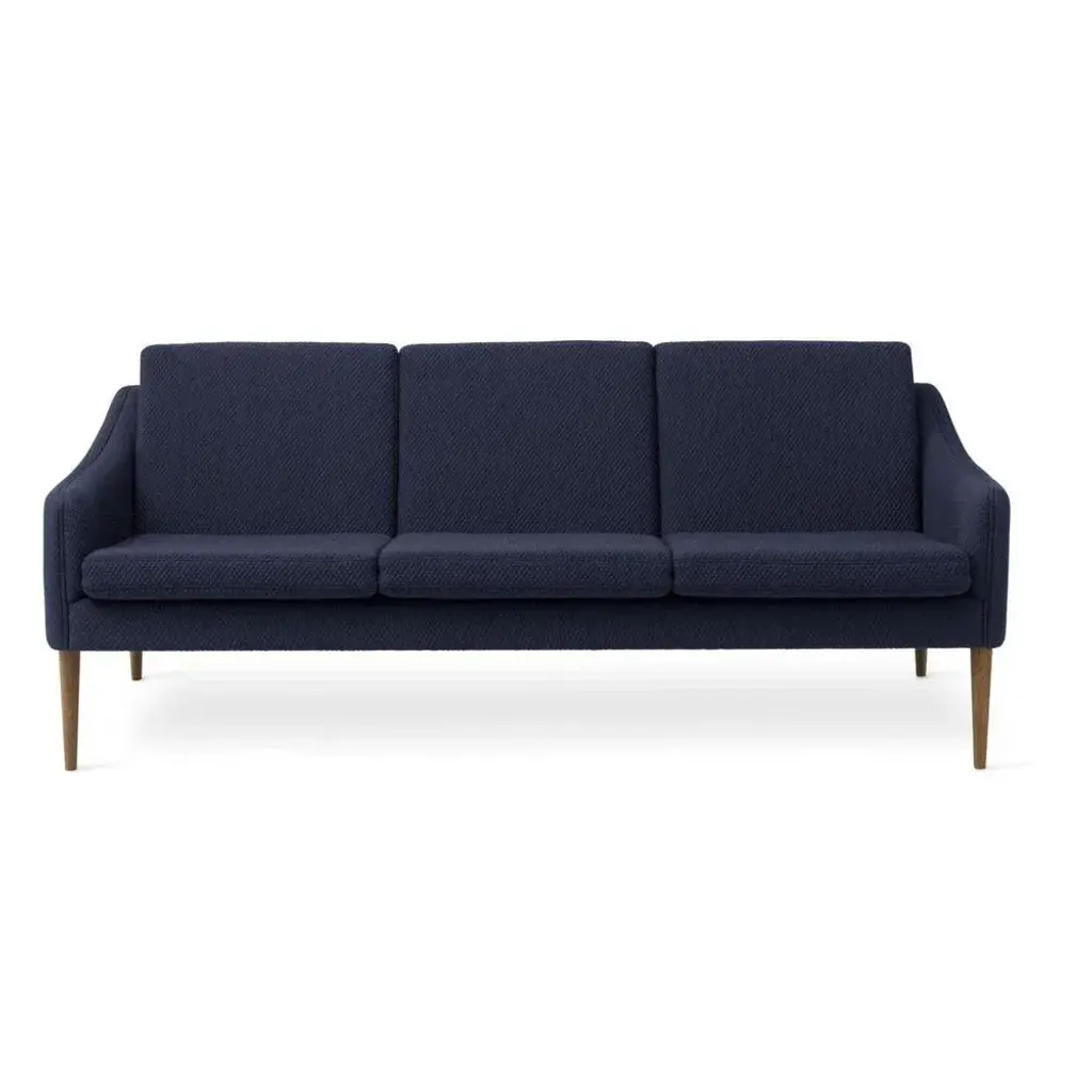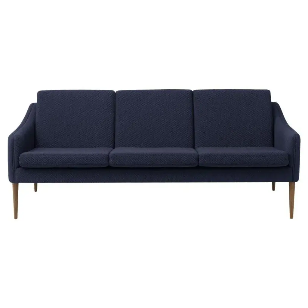 Mr olsen 3 seater oak mosaic royal blue by warm nordic dimensions: d201 x w79 x h 78/46 cm material: textile upholstery, foam, spring system, solid oiled oak legs, solid smoked oak legs. Weight: 50 kg also available in different colors and finishes. A classic, sophisticated designer sofa designed in the 1950s by the highly acclaimed danish architect, hans olsen. The sofa is now available in an exclusive anniversary edition with sustainable textiles launched on the occasion of hans olsen's 100th anniversary. The mr olsen sofa is an original design that is a perfect match for a gentleman's room or a feminine sofa group, in a home office or a holiday cottage: anywhere that classic furniture design makes all the difference. Mr olsen is both slender and organic with a lightness that is unusual by comparison with other design classics of the period. Mr olsen's special elegance derives particularly from the soft shapes of the sofa's armrests and the round, tapered legs. The sofa is available both in a classic leather version and a fully upholstered version in beautiful fabrics, including sophisticated velour for a more daring look.
