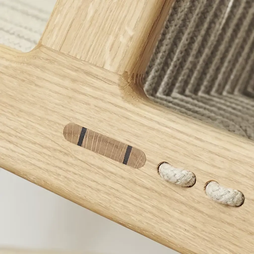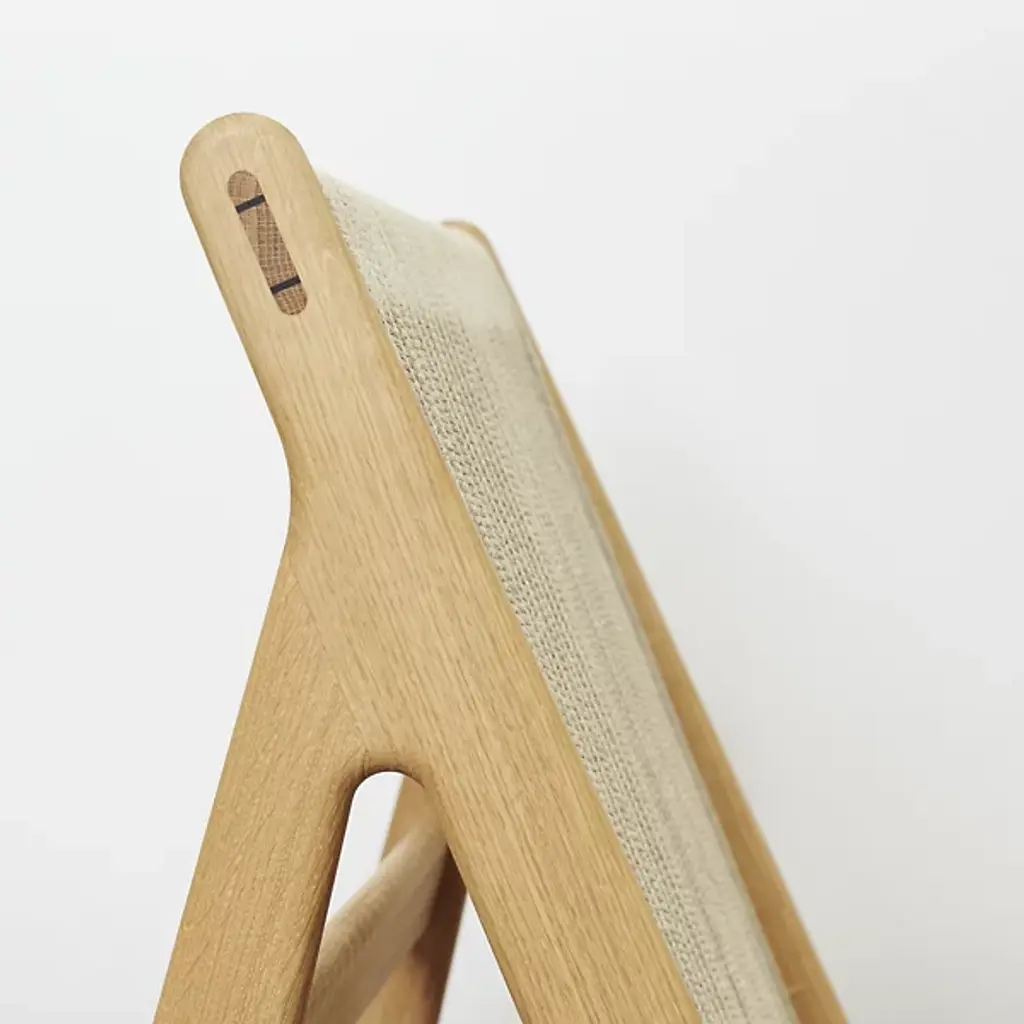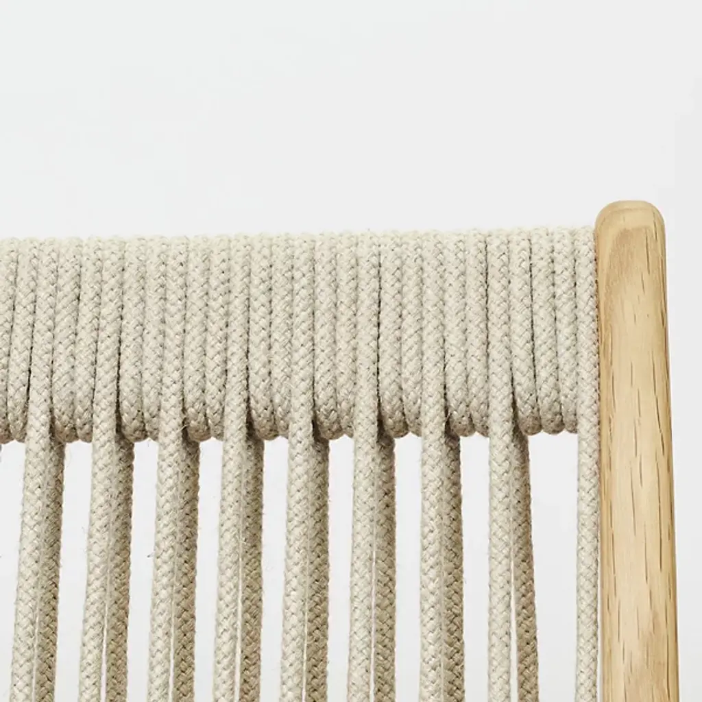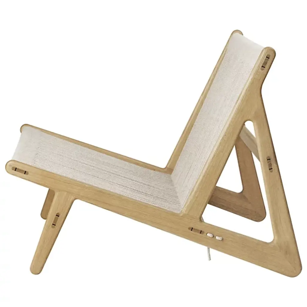 The Mr01 Initial Lounge Chair with Cushion from Gubi by Mathias Steen Rasmussen is a beautiful blend of craftsmanship, comfort, and sustainability. Inspired by a desire for lounging and meditation, this elegant chair features a sturdy open triangle frame crafted from FSC-certified oak or walnut, completely screw-free. Its seat and backrest are hand-woven with 90 meters of natural linen cord, creating a sense of lightness and airflow. It includes a bouclé wool pillow for added comfort, making it perfect for homes or hospitality settings.