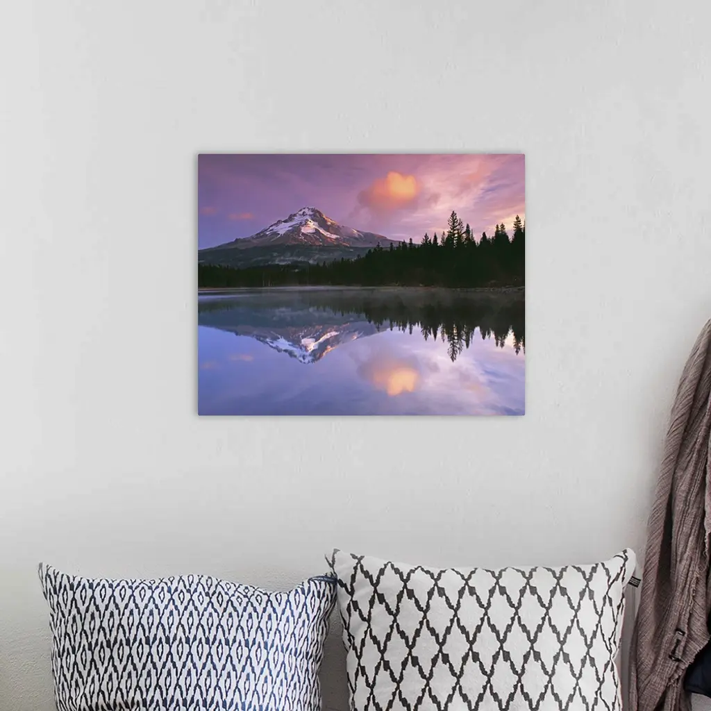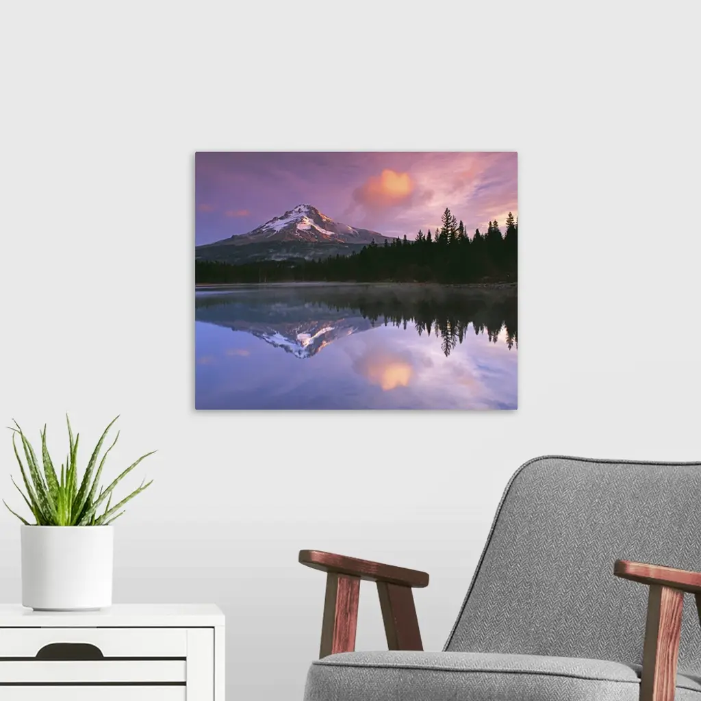 Mount Hood and the surrounding forests reflected in a lake, Oregon.