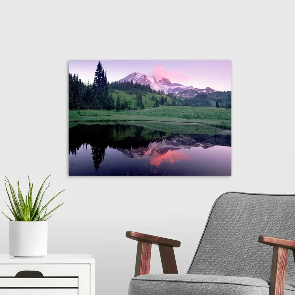 Mt Rainier reflected in lake, Mt Rainier National Park, Washington wall art for home and office decor. Discover canvas art prints, photos, mural, big canvas art and framed wall art in GreatBigCanvas.com's varied collections.