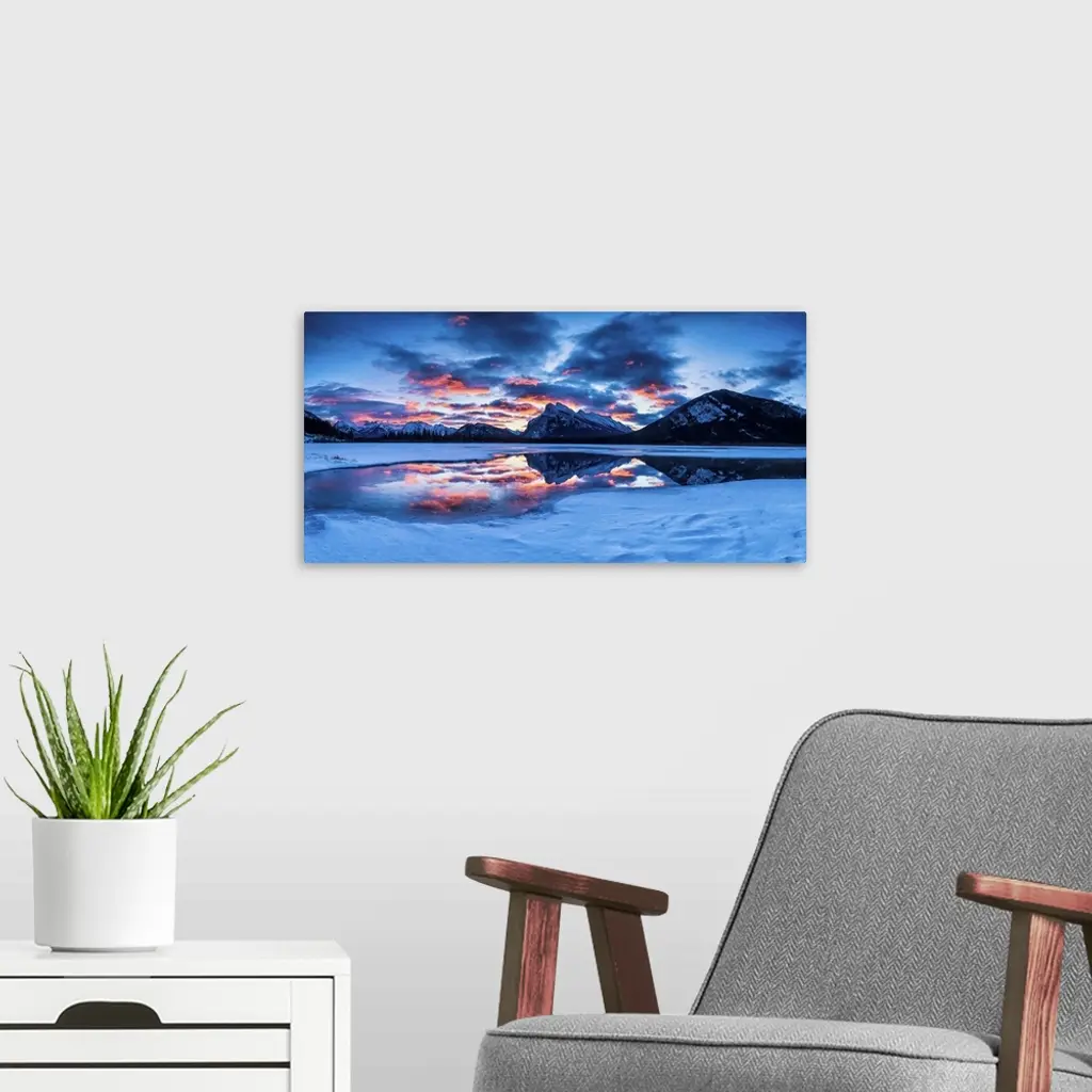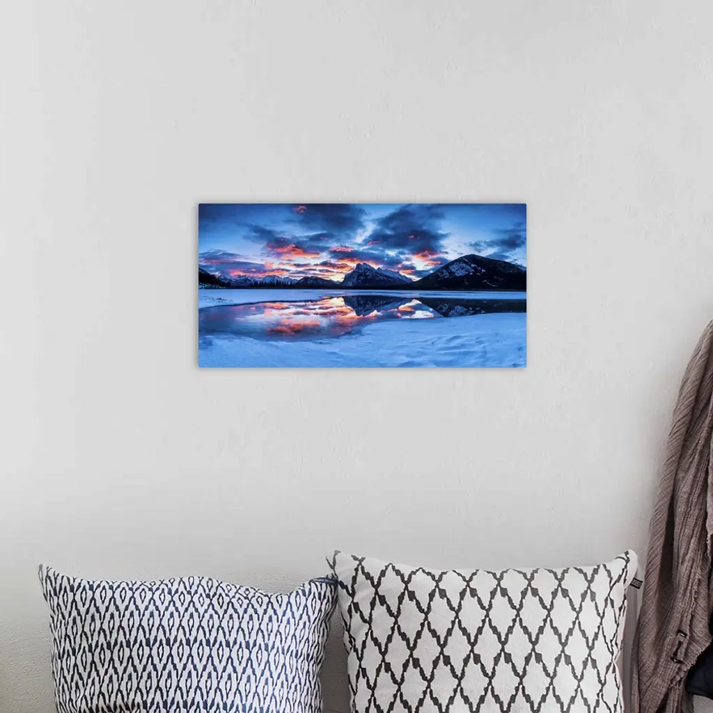 Mt. Rundle Reflecting In Vermillion Lakes At Sunrise, Banff National Park, Canada