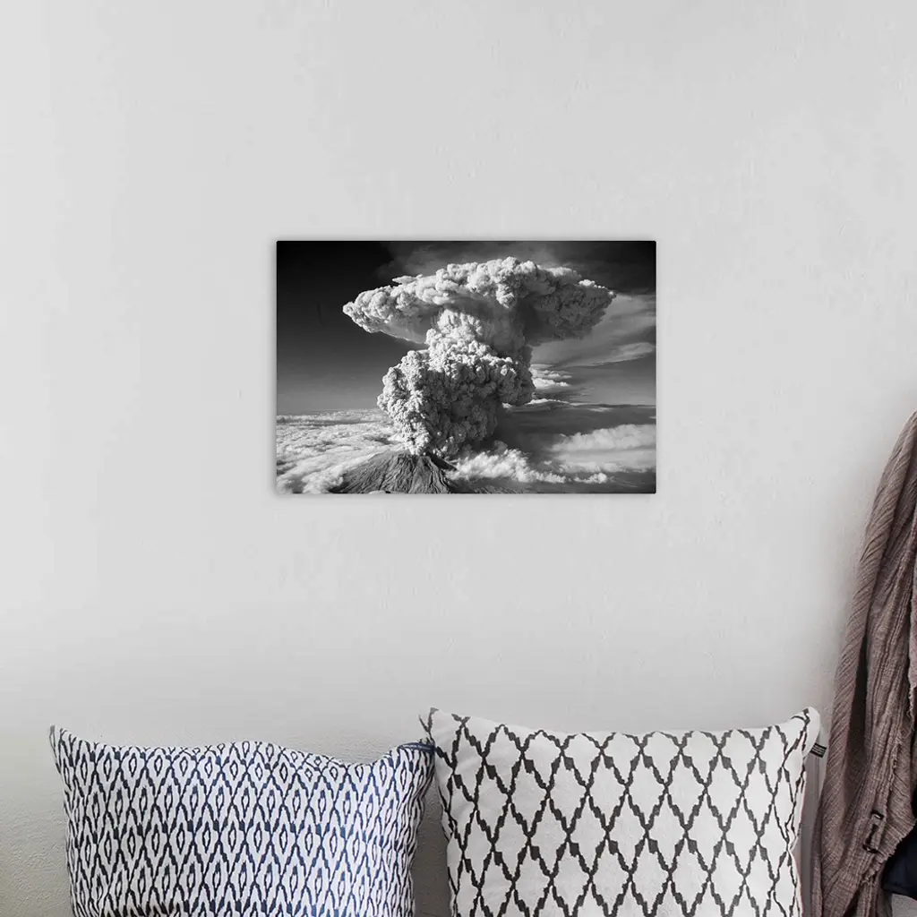 7/23/1980-Spirit Lake, WA- Looking more like a smoke cloud from an A-bomb blast than steam and ash from a volcano eruption, Mt. St. Helens sent this plume of steam and ash some 60,000 feet in the air, as the volcano awoke from a six-week nap.