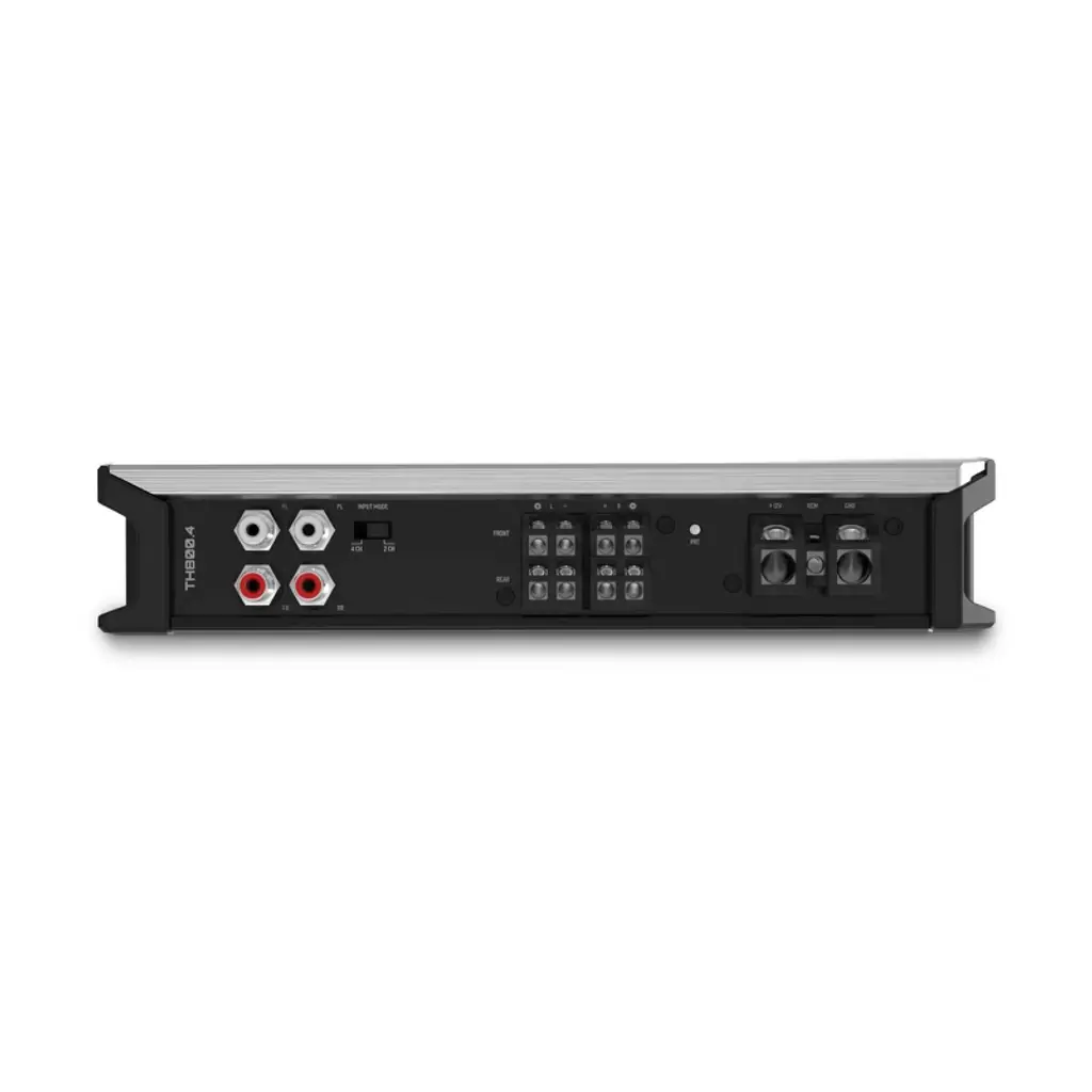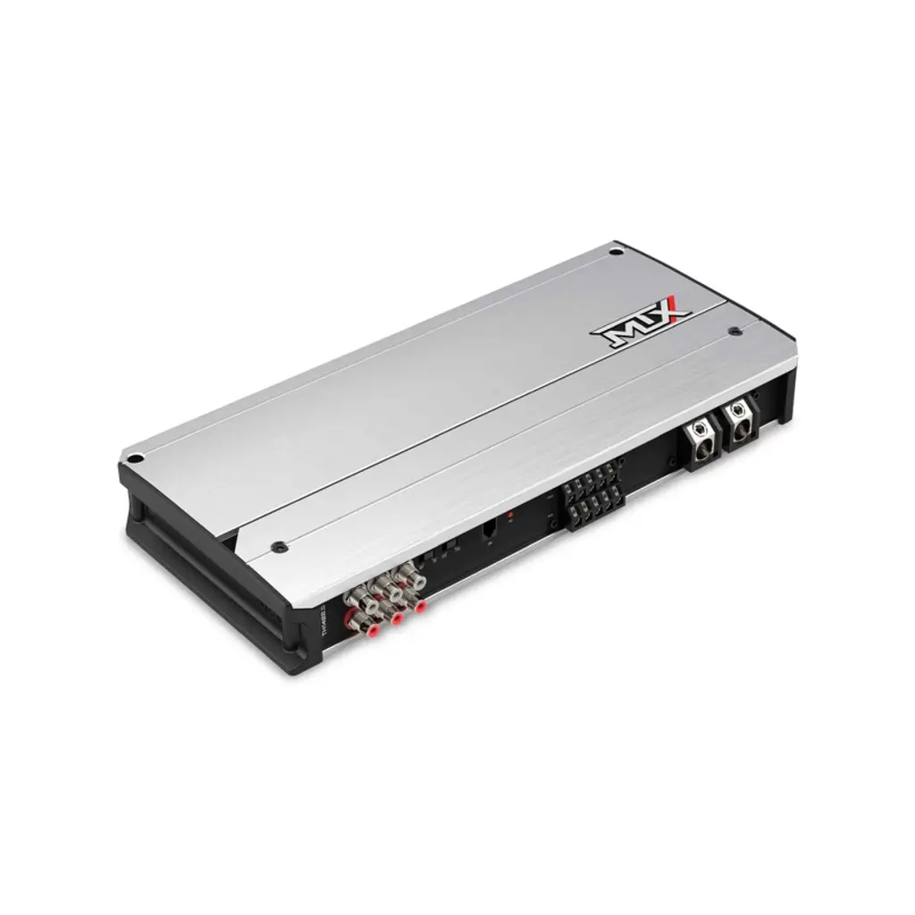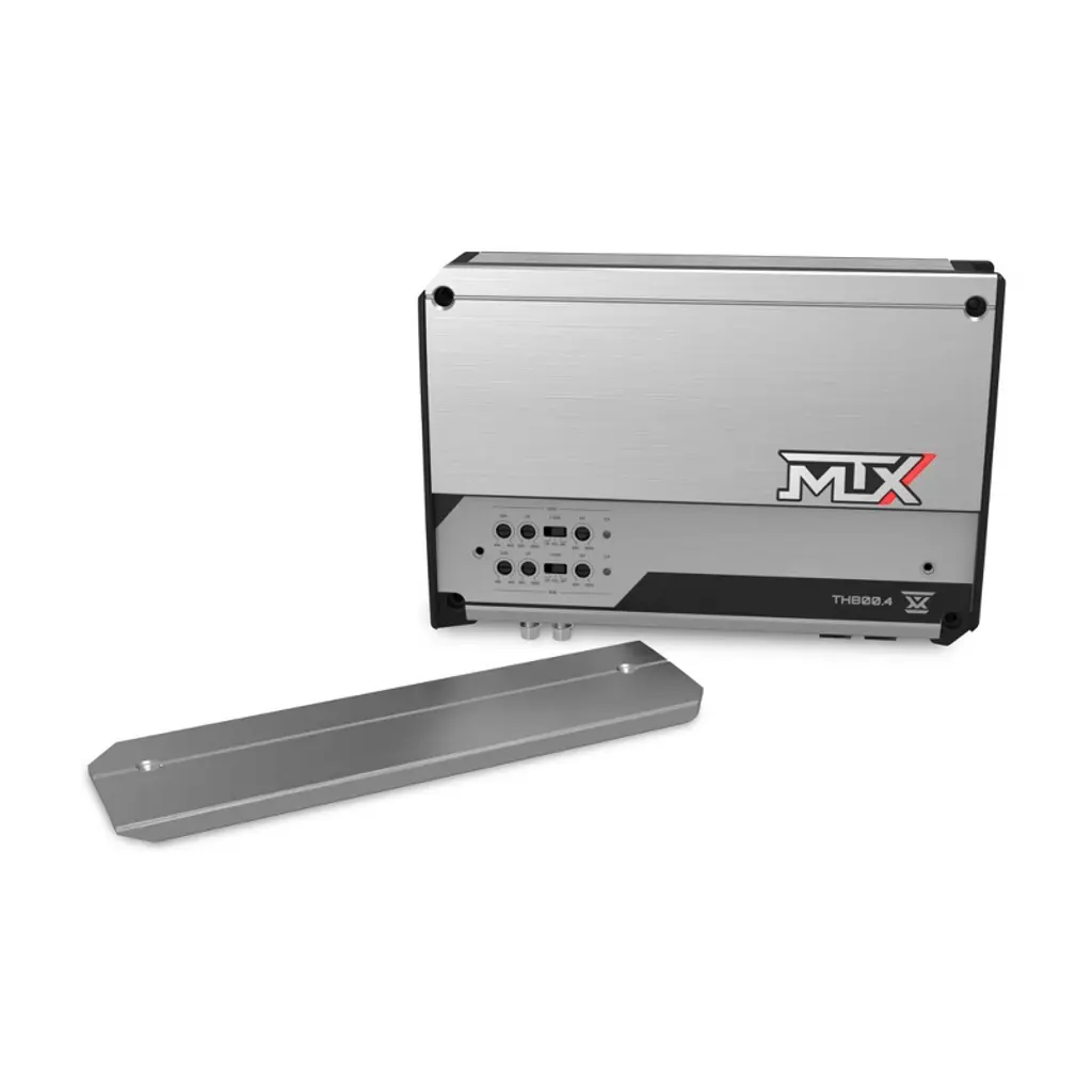 THUNDER 800-Watt RMS Full Range Class-D 4-Channel Amplifier Powerful, Full-Range Sound in Every Drive Transform your car audio experience with the TH800.4, a high-performance 4-channel amplifier from MTX Audio’s THUNDER Series. Delivering an impressive 800 watts RMS, this compact powerhouse offers balanced, high-quality sound across every speaker. With advanced Class-D efficiency, customizable controls, and robust protection features, the TH800.4 is perfect for audiophiles who demand immersive, distortion-free audio on every journey. Built-In Protection for Peace of Mind The TH800.4 is equipped with an LED power and protection indicator, alerting you to thermal, short, or voltage issues. Designed for reliable performance, this amplifier safeguards your system to ensure uninterrupted music enjoyment, whether you’re cruising city streets or taking long road trips. Features 800 Watts RMS Power Output Reliable Full-Range Class-D Circuit Design Compact Size for Flexible Installation 10V High-Level Audio Input Compatibility High-Quality Tiffany-Style RCA Input Power and Protection LED Indicator Light Surface Mount Component Technology Direct Insert Power and Speaker Terminals Thermal, Short, and Over/Under Voltage Protection Clip Detection Light for Tuning Optimization Dyno Power Rating Certificate Included Specifications Description: 4-Channel Topology: Full Range Class D 4Ω RMS Power Output: 100W x 4 Channels 2Ω RMS Power Output: 200W x 4 Channels 4Ω RMS Bridged Power Output: 400W x 2 Channels THD: < 0.2% Signal to Noise Ratio: > 98dB Frequency Response: 20Hz - 20KHz Crossover: 40Hz - 400Hz Maximum Input Signal: 10V Warranty Period: 24 months from date of purchase Dimensions & Weight Length: 9 ³⁄₄” (247mm) Width: 7” (176mm) Depth: 2” (50mm) Weight: 5.69 lbs (2.58 kg)