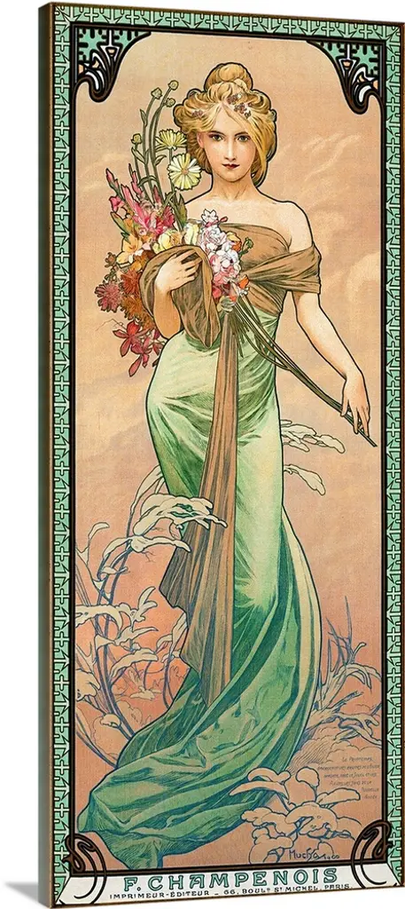 Mucha Perfume wall art for home and office decor. Discover canvas art prints, photos, mural, big canvas art and framed wall art in GreatBigCanvas.com's varied collections.