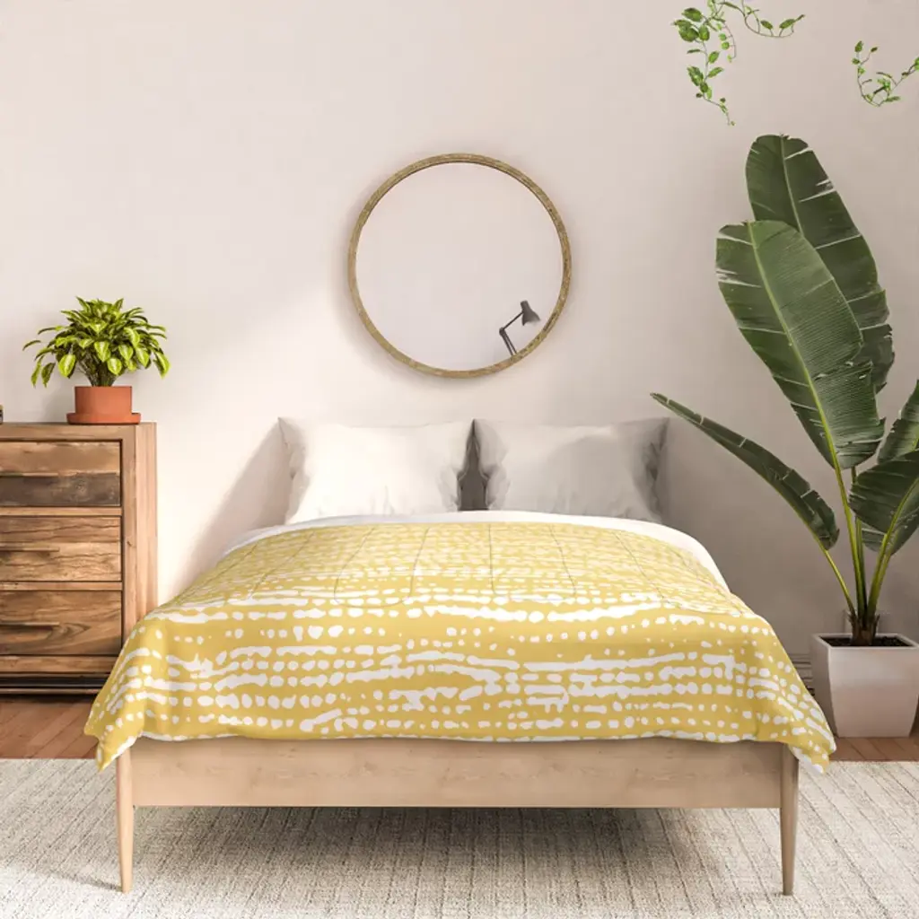 Mud Cloth Stitch Stripes Boho Yellow And White Comforter