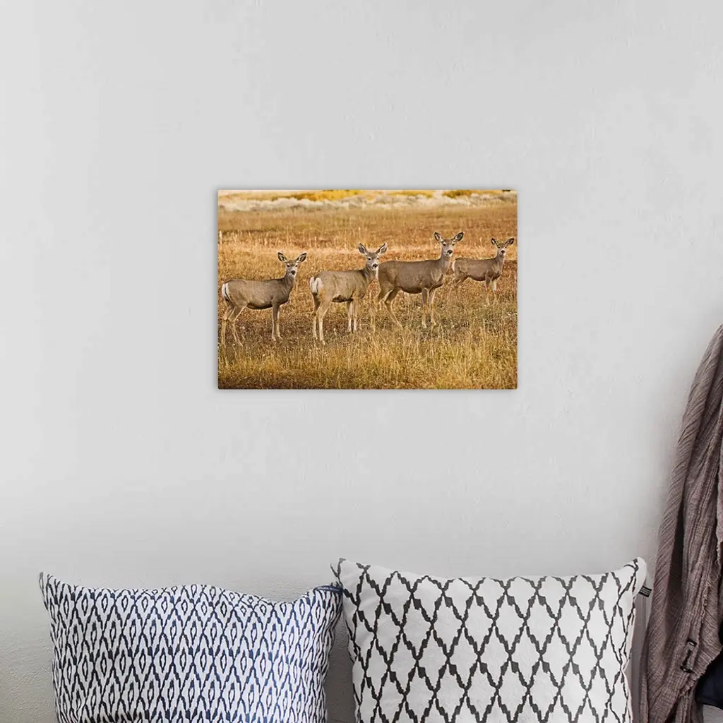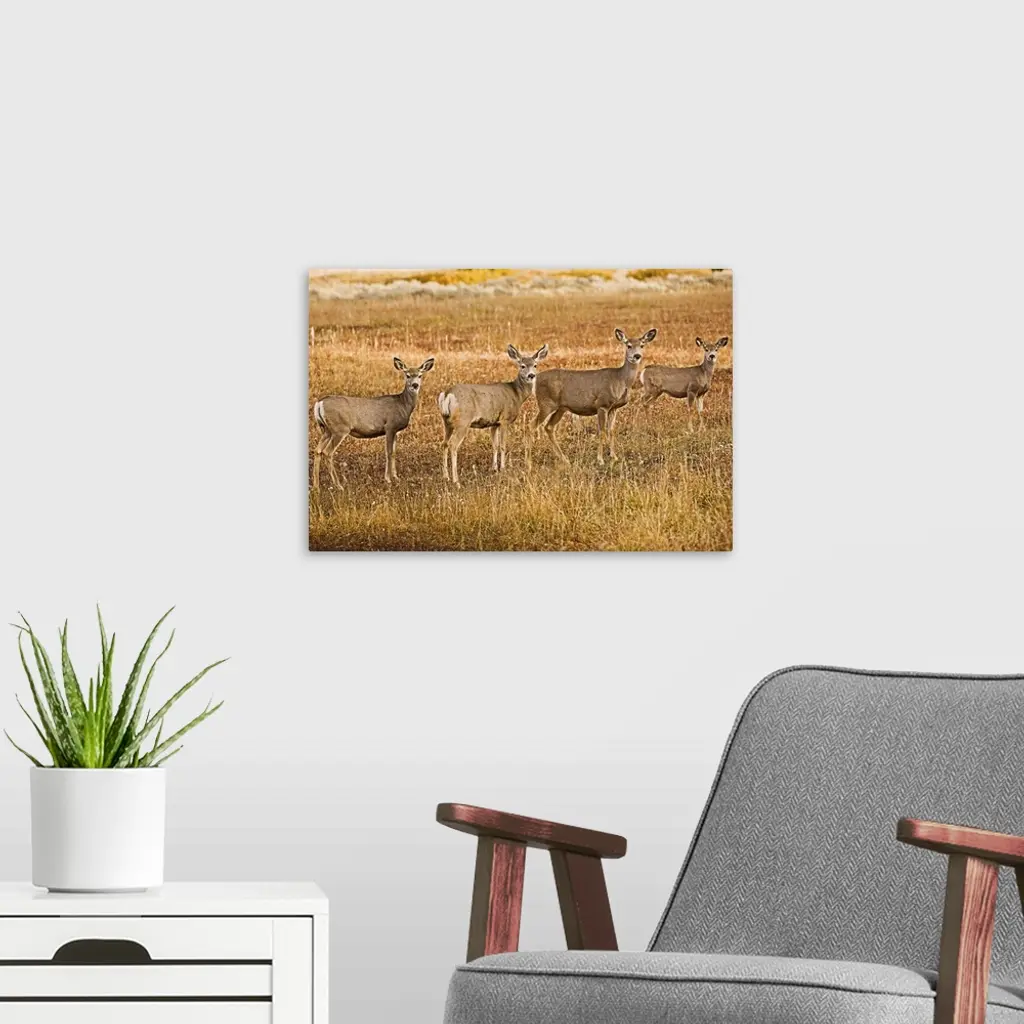 Mule Deer (Odocoileus Hemionus) Standing In A Row, Wyoming