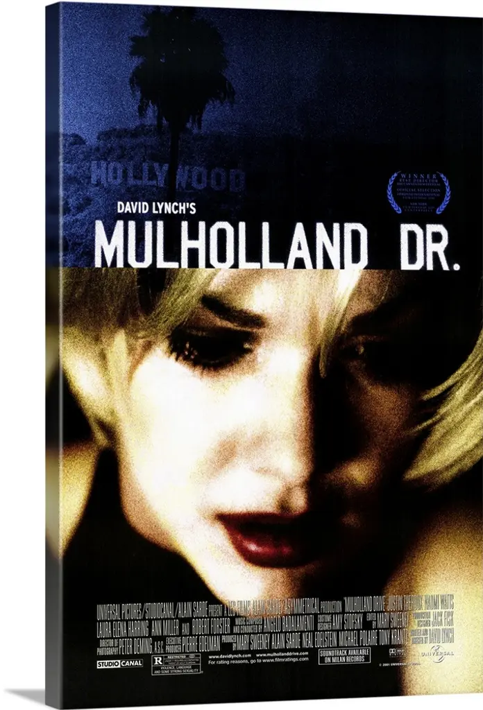 David Lynch is back to his old trippy surrealistic tricks again, folks. Lush visuals and atmospheric Badalamenti music are once again the key ingredients in this hypnotic look at Hollywood through a kaleidoscope. Betty (Watts), an aspiring actress staying at her aunt's vacant apartment, comes home to find mystery girl Rita (Harring) taking a shower there. Rita, who has taken her name from a movie poster, has amnesia, and Betty tries to help her piece her life together. Meanwhile, successful young director Adam (Theroux) is threatened with death unless he casts a certain actress favored by a wheelchair-bound dwarf who issues orders over a cell phone. Then (if you can believe it) things get even weirder. Originally conceived as a pilot for ABC television, but reshot as a feature. Execs must have guessed the public wasn't ready for Laverne and Shirley Drop Acid.