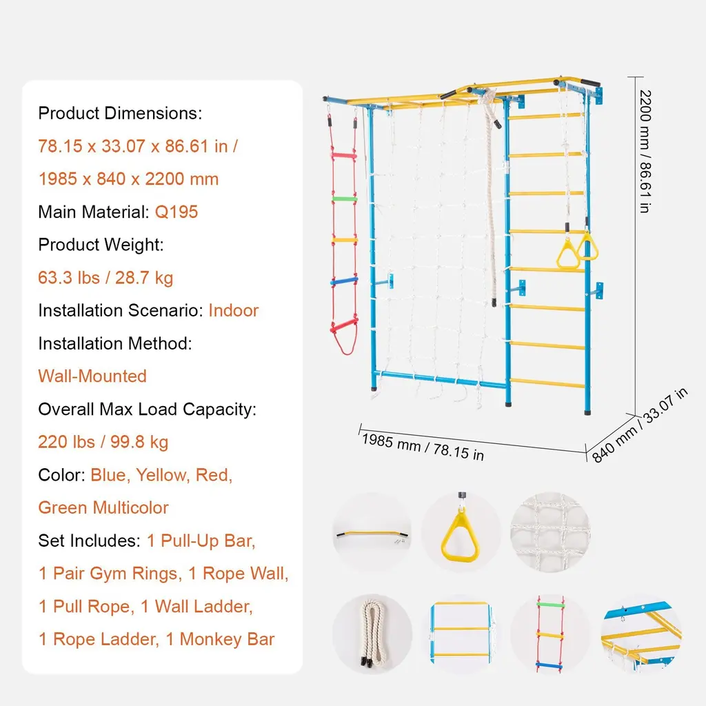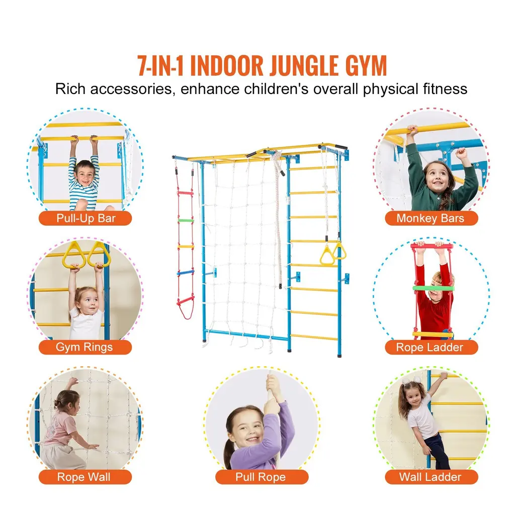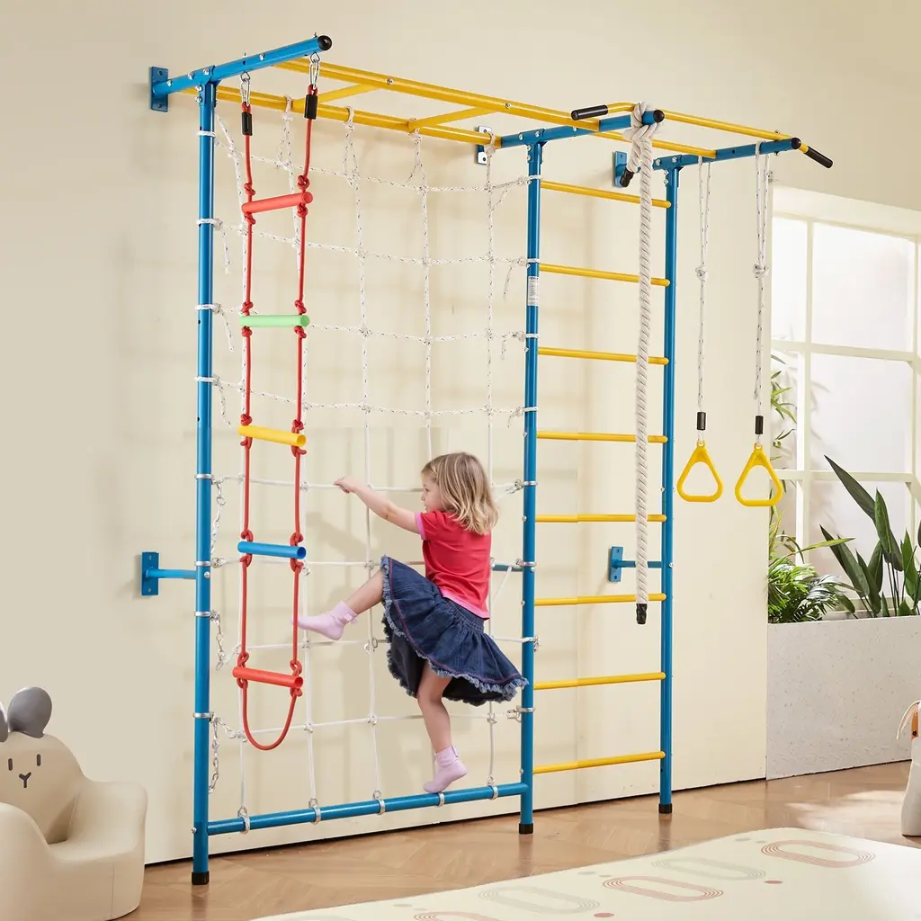 Multi Color Carbon Steel Exercise Climbing Toys 7 In 1 Kids Gym Set With 9 Level Grip - Multi Color