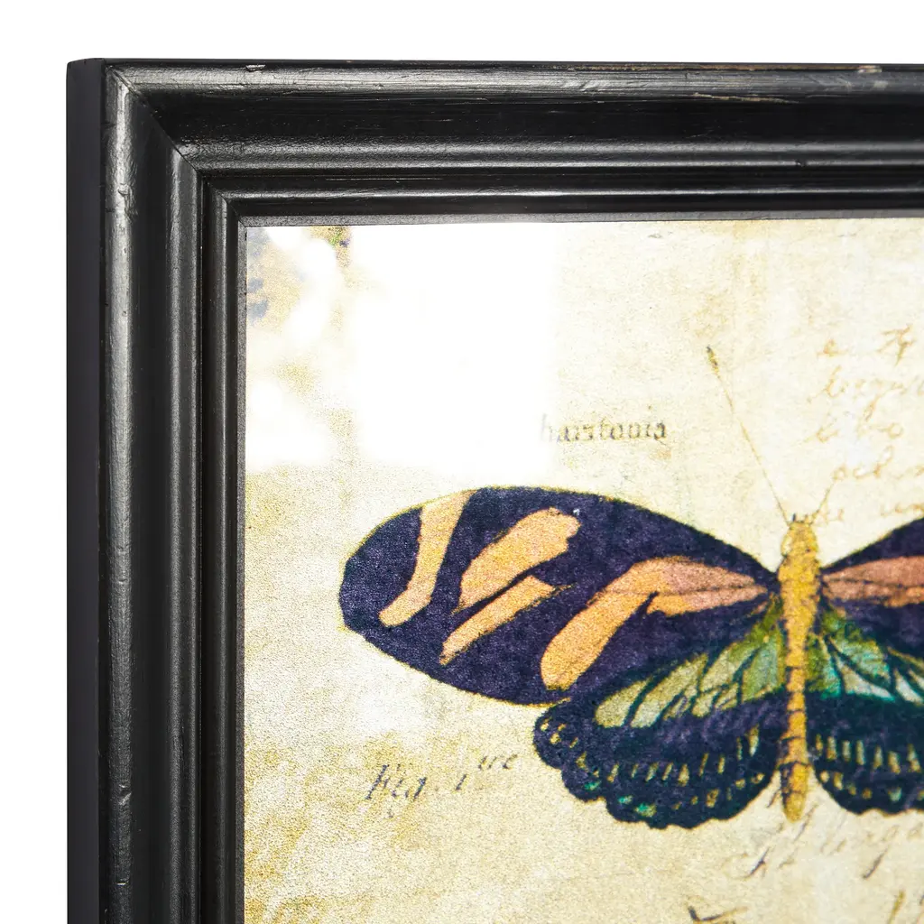 Multi Colored Glass Butterfly Framed Wall Art With Black Frame (Set Of 2) - Multi