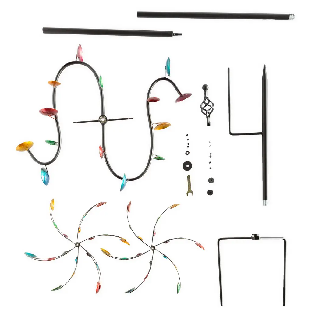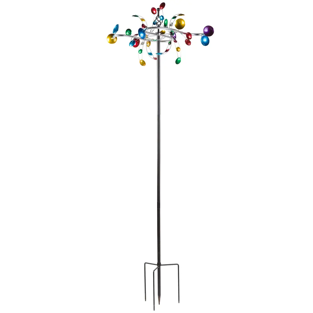 Our Horizontal Cups Wind Spinner is a delightful display of color and motion. Make your home stand out any time of year with a show-stopping statement that takes just minutes to set up.Horizontal s-shaped arms spin around the central axis when the wind catches the colorful cups. A pair of vertical rotors – also outfitted with their own colorful metal cups as well as faux jewels – put on a spin-tacular performance with an upright twirl. You’ll be mesmerized for hours!