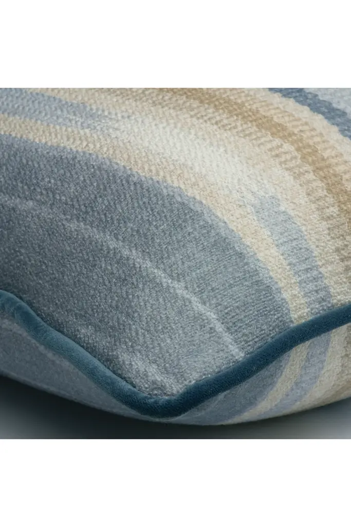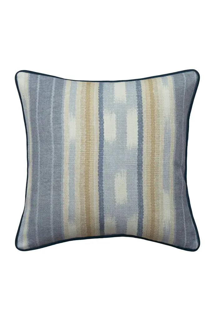 Argo is the ship that was built by the gods to help Jason and the Argonauts sail from Iolcos to Cochis to retrieve the Golden Fleece. A vertical stripe with an irregular stitch effect detail running through the center in rich spice colors, a fresh denim blue and smart faded grays.All cushions are piped in our rich and luxurious Firepit Outdoor Velvet and stuffed with hollow fiber pads. We recommend that cushions are looked after carefully and are best used in dry weather. Our outdoor cushions have a showerproof finish but as with all outdoor textiles, they prefer to be stored inside when they are not being used, or during periods of wet, cold or damp weather. - Orange, Brown, Blue