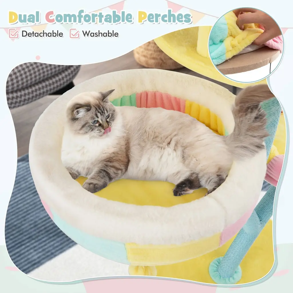 Multi-Layer Cat Tree With 2 Removable Perches Scratching Posts - 19.5" X 19.5" X 9.5" - Multi