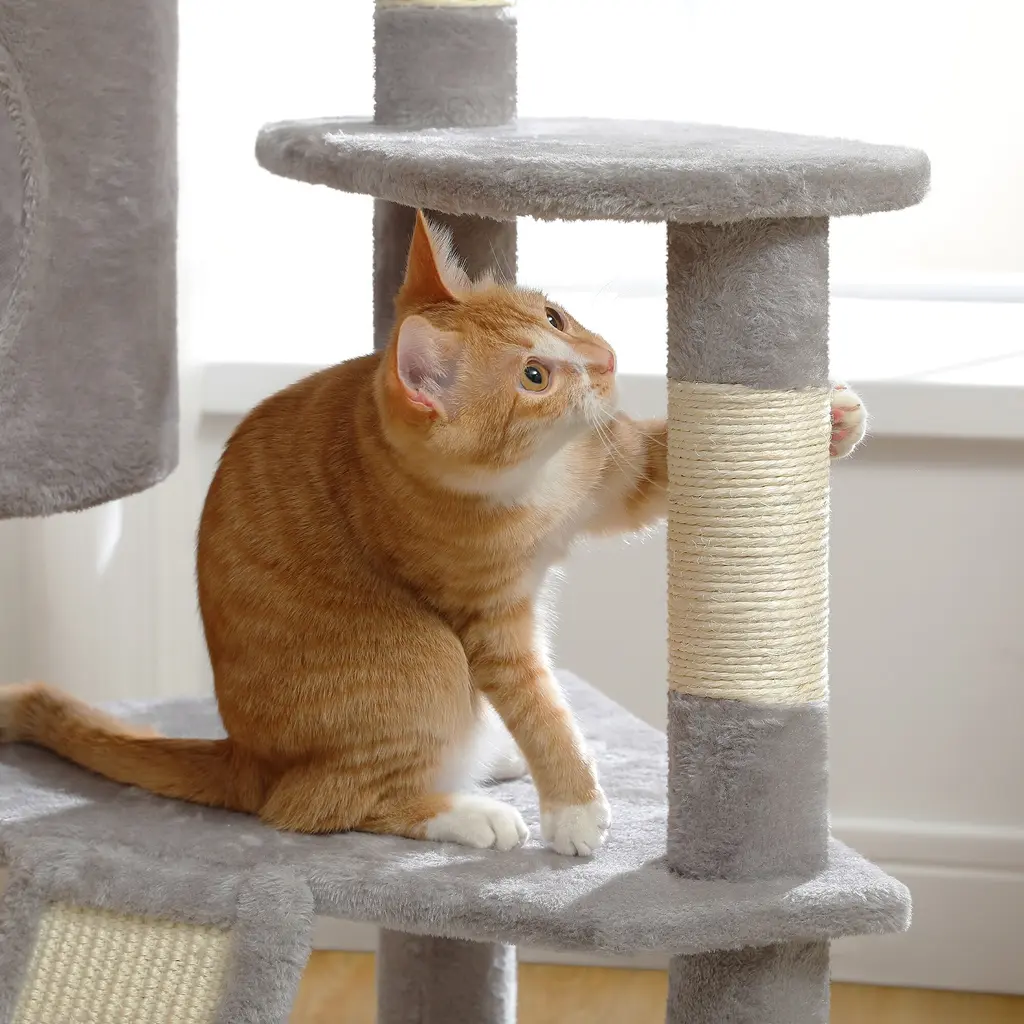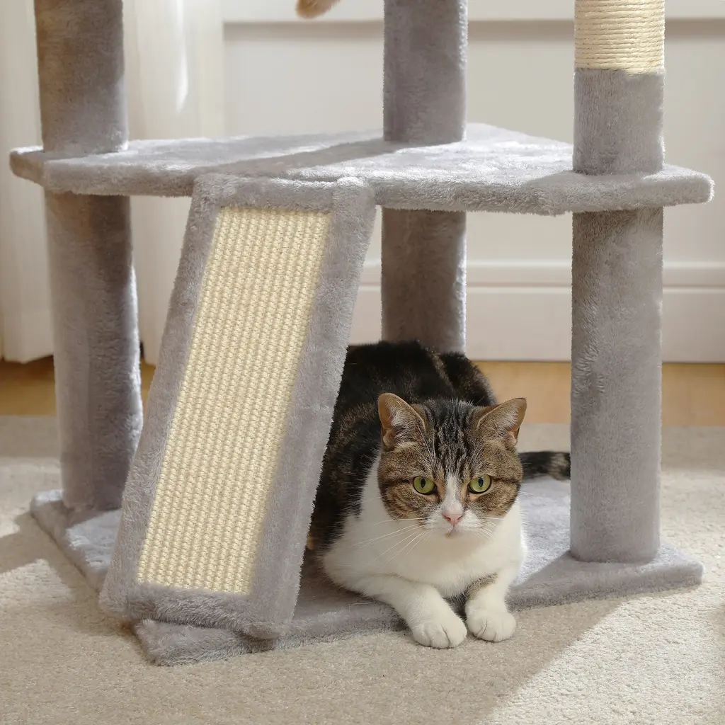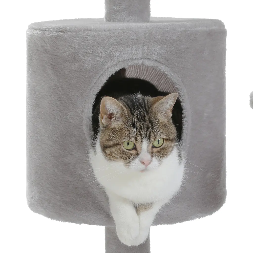 Multi-Level Cat Climbing Tower With Cat Condo, Cat Tree With Scratching Board - Grey
