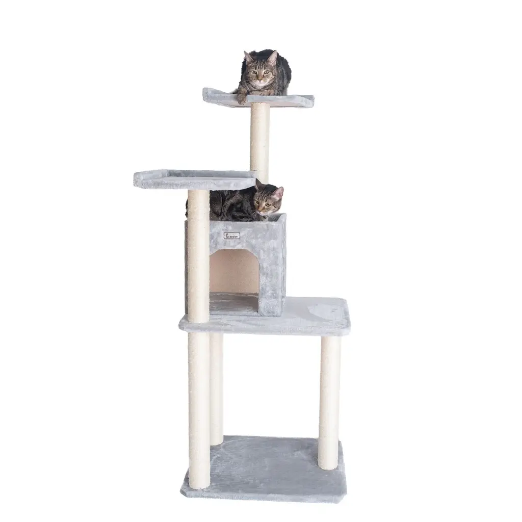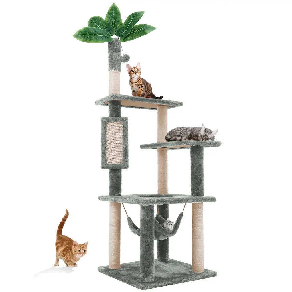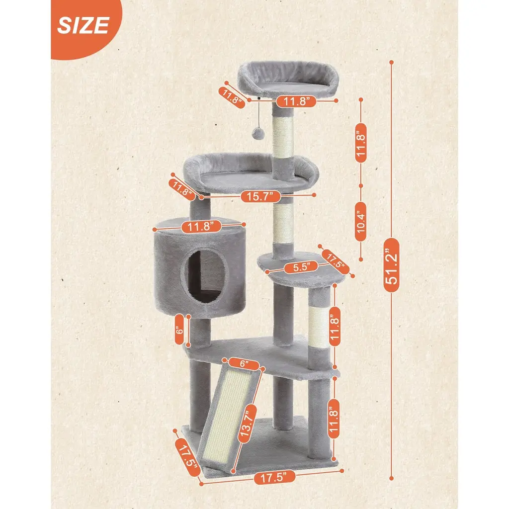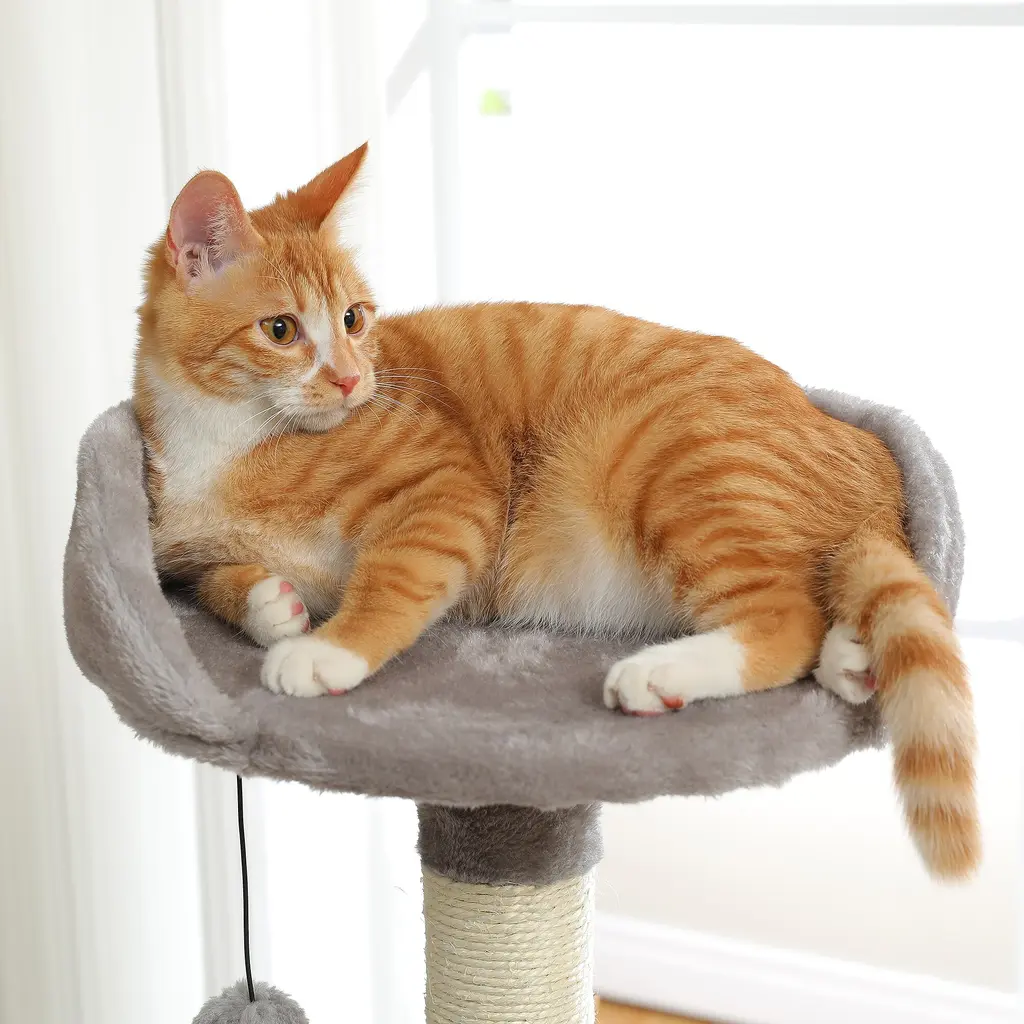 Multi-Level Cat Climbing Tower With Cat Condo, Cat Tree With Scratching Board - Grey