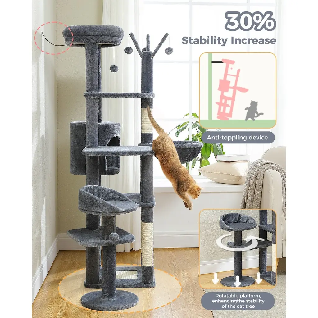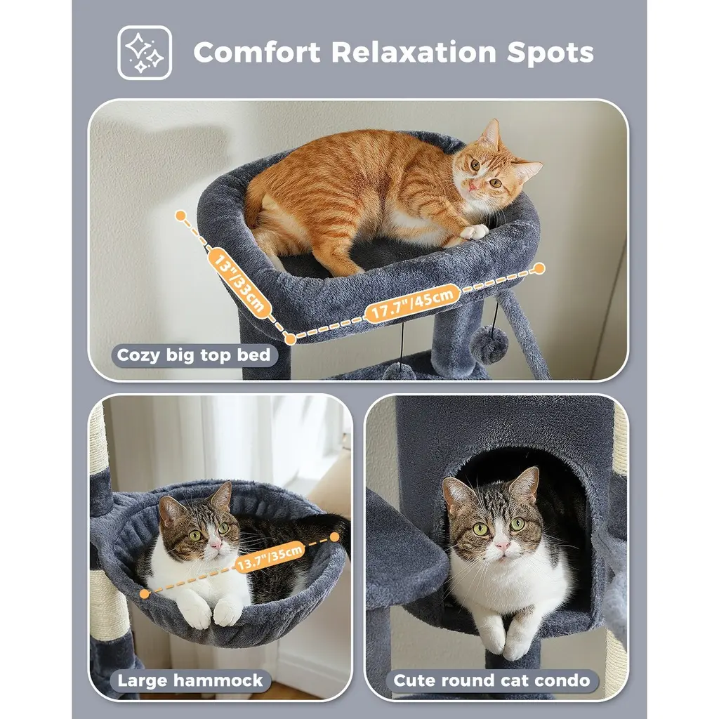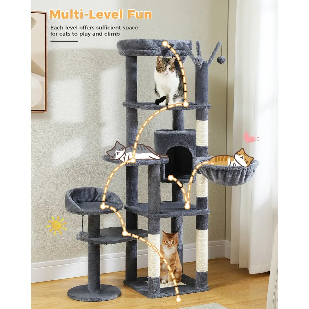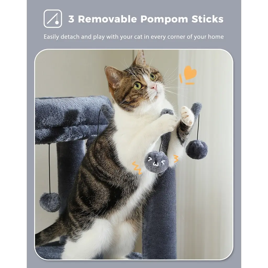 Multi-Level Cat Tree With 3 Removable Pompom Sticks, Condo, Hammock, Scratching Post & 2 Perches - Dark Grey