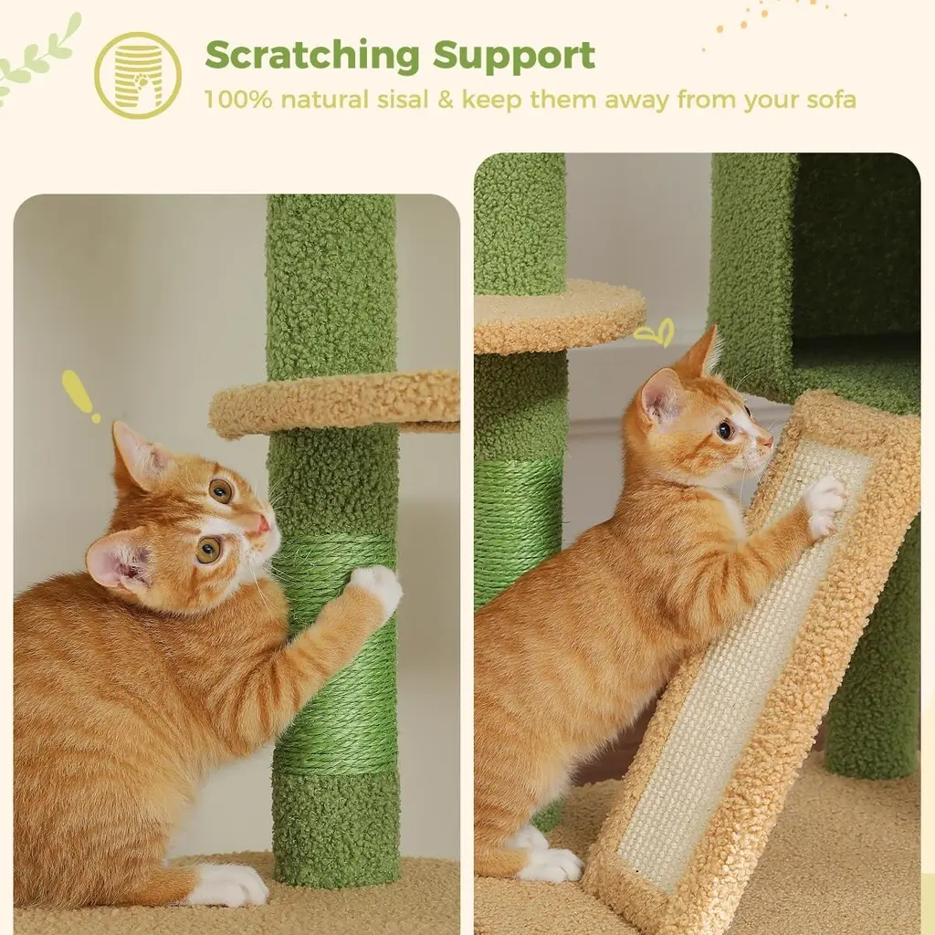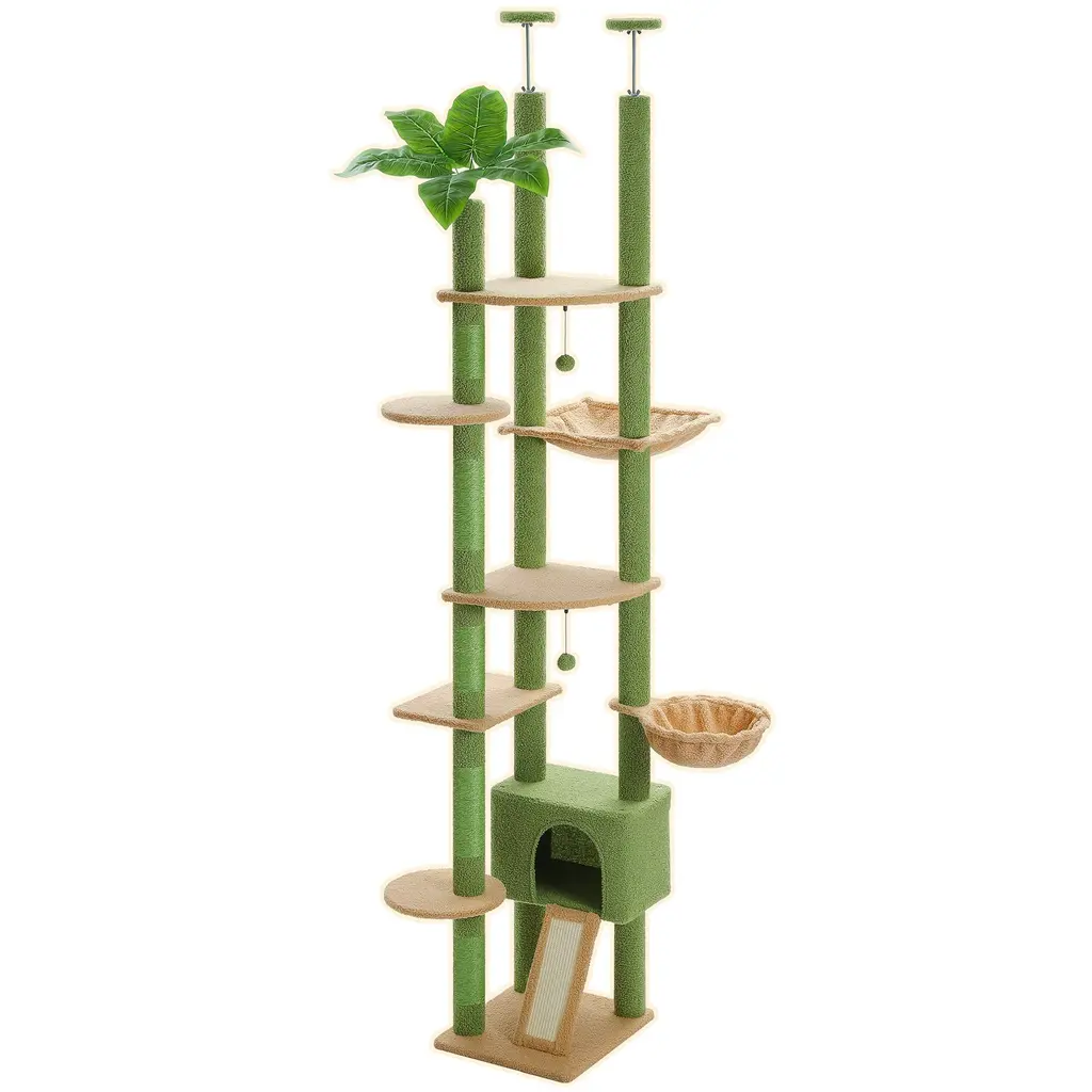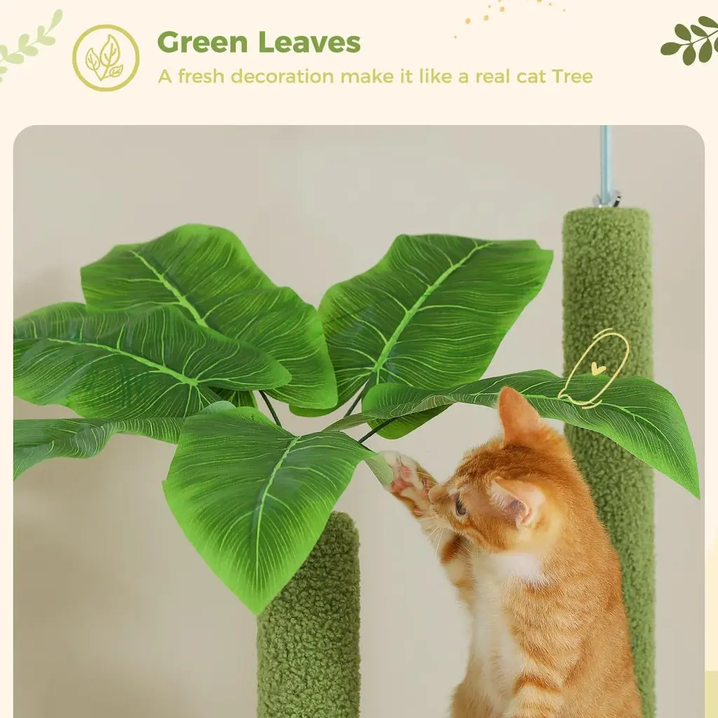Multi-Level Cat Tree With Cat Condo Height Adjustable - Green