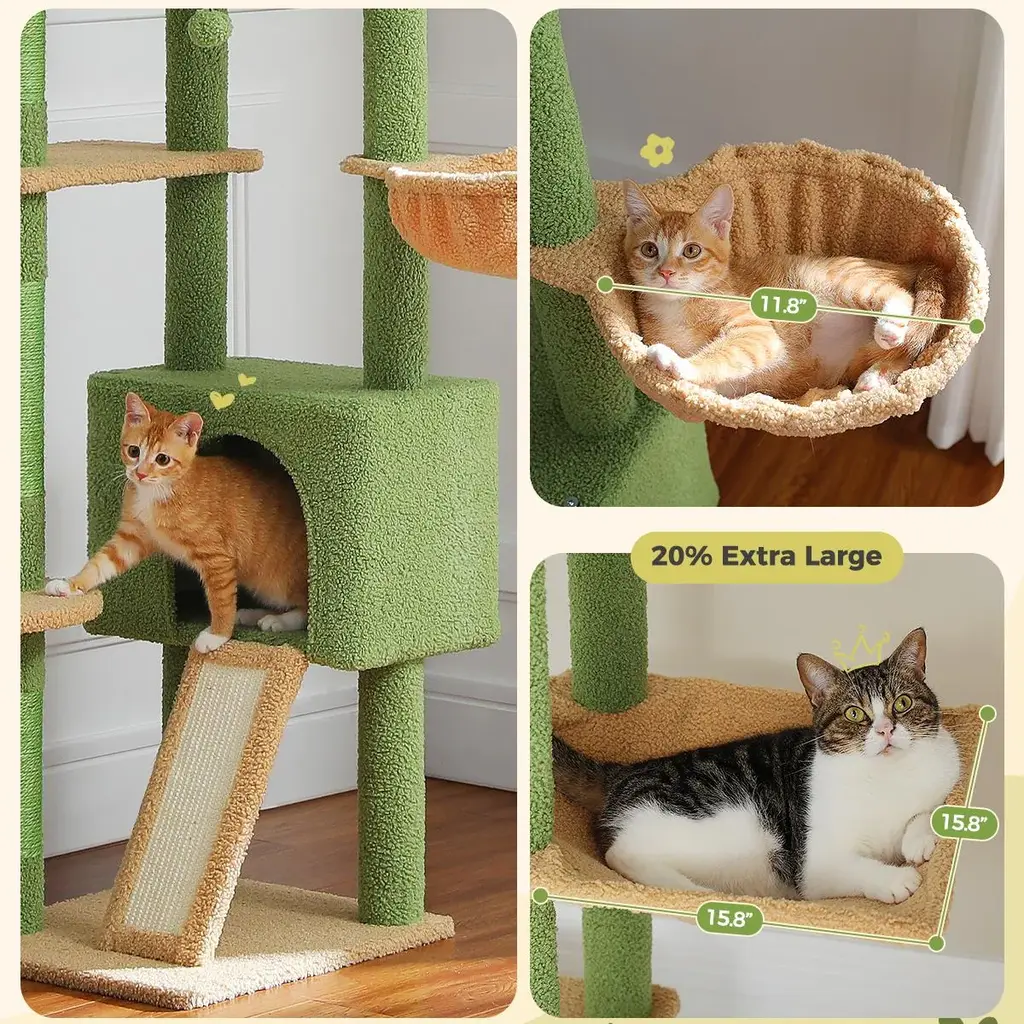 Welcome to the world of feline bliss! The Ultimate Cat Tree is a versatile and innovative solution for every cat owner. With its adjustable height feature, ranging from 90.5 inches to 100.4 inches, you can customize the tree to suit your cat's preferences. Whether you have a playful kitten or a senior cat, this cat tree is designed to accommodate them all. Say goodbye to the hassle of constantly buying new cat trees as your furry friend grows - the Ultimate Cat Tree grows with them! Cat Apartment and Cozy Hammock: Cats love having their own little space to retreat to, and the Ultimate Cat Tree provides just that. The built-in cat apartment offers a cozy and private sanctuary for your feline companions. With plush interiors and a secure entrance, it's the perfect spot for your cat to relax, nap, or simply observe the world from a safe distance. And let's not forget about the cozy hammock - a favorite spot for lazy afternoons and leisurely lounging. Scratching Posts and Natural Instincts: We understand that cats have a natural instinct to scratch, and that's why the Ultimate Cat Tree is equipped with multiple scratching posts. Made from durable materials, these posts provide an ideal outlet for your cat's scratching needs, saving your furniture from their sharp claws. Let your cat indulge in its primal instincts without worry - our scratching posts are built to withstand even the most enthusiastic scratchers. Comfort and Quality: We believe that every cat deserves the best, which is why we've meticulously designed the Ultimate Cat Tree with comfort and quality in mind. The plush fabric covering on each level ensures a soft and cozy experience for your cat. The high-quality particle board used in its construction guarantees sturdiness and stability, giving you peace of mind knowing that your cat is safe while they explore and play. Aesthetic Appeal: Not only does the Ultimate Cat Tree offer functionality and comfort, but it also adds a touch of style to your home. With its sleek design and modern aesthetic, it seamlessly blends into any living space. The neutral color palette complements a variety of interior decor styles, making it a tasteful addition to your home. Your cat will love their new playground, and you'll love the way it enhances the overall look of your space. Don't miss out on the opportunity to treat your beloved feline companion to the Ultimate Cat Tree. With its adjustable height, cat apartment, cozy hammock, and scratching posts, it has everything your cat needs for endless hours of fun and relaxation. Please note that the product color may slightly vary from the images. If you have any questions or concerns, our friendly customer service team is here to assist you. Upgrade your cat's playtime experience and order your Ultimate Cat Tree today!