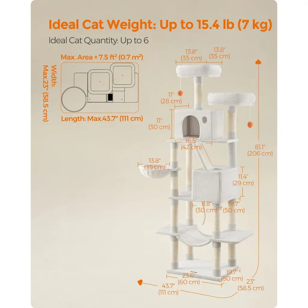 Multi-Level Cat Tree With Perches Caves And Scratching Posts - 81.1" - Cream White