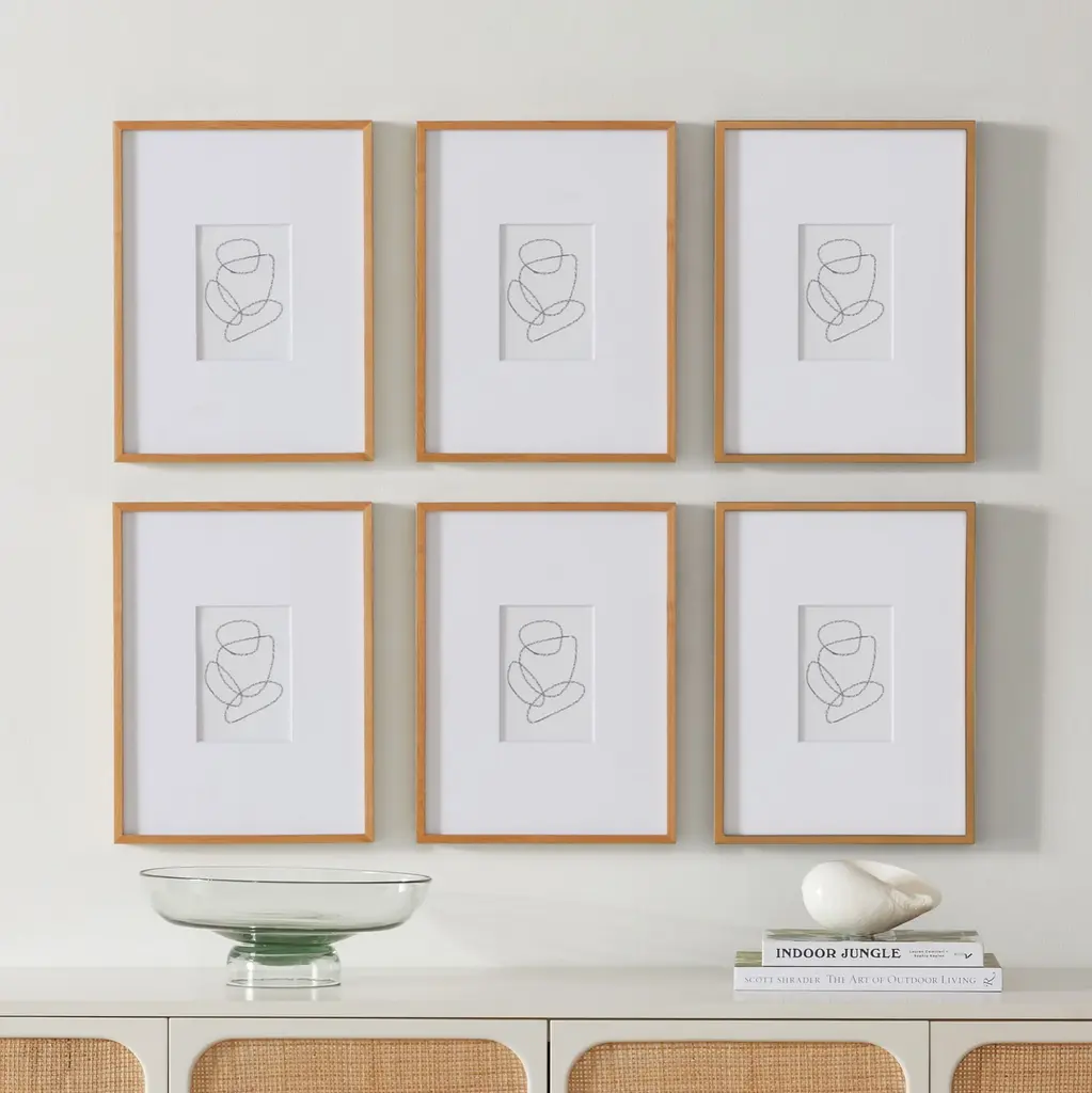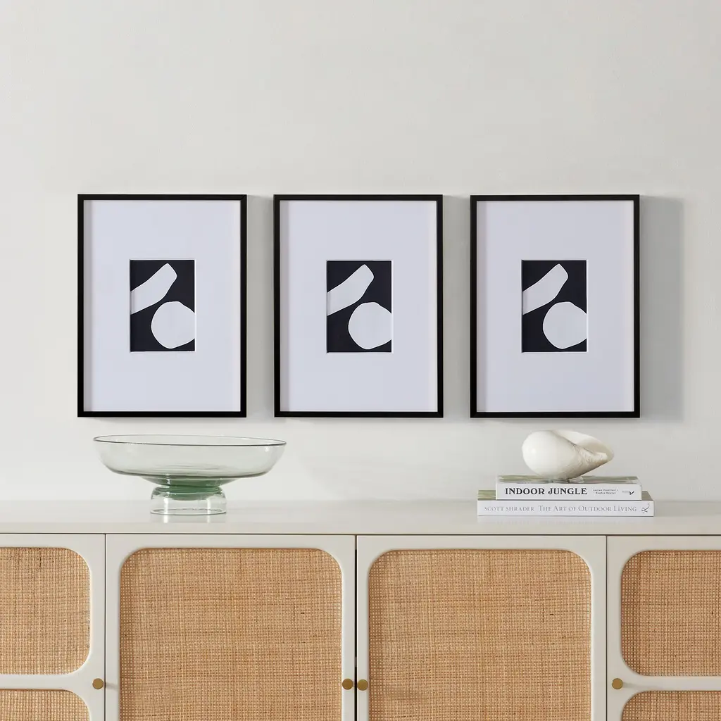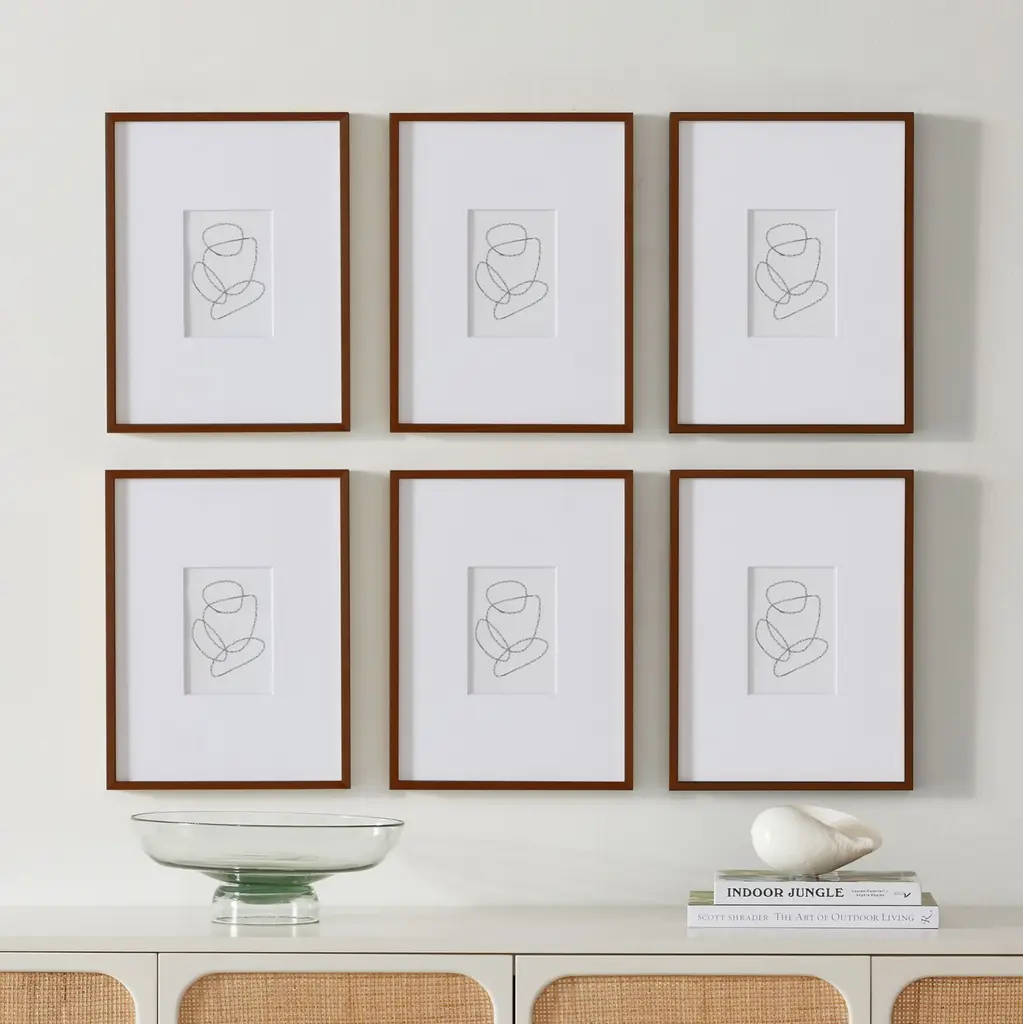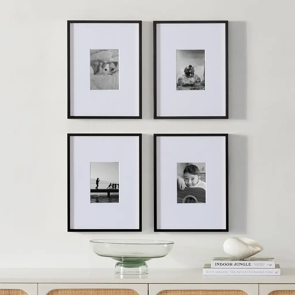 Available in a variety of set options to fit any piece of art. Quick and easy to hang with included D-rings. Includes different mats for more options. Tempered glass protects your photo or art piece.