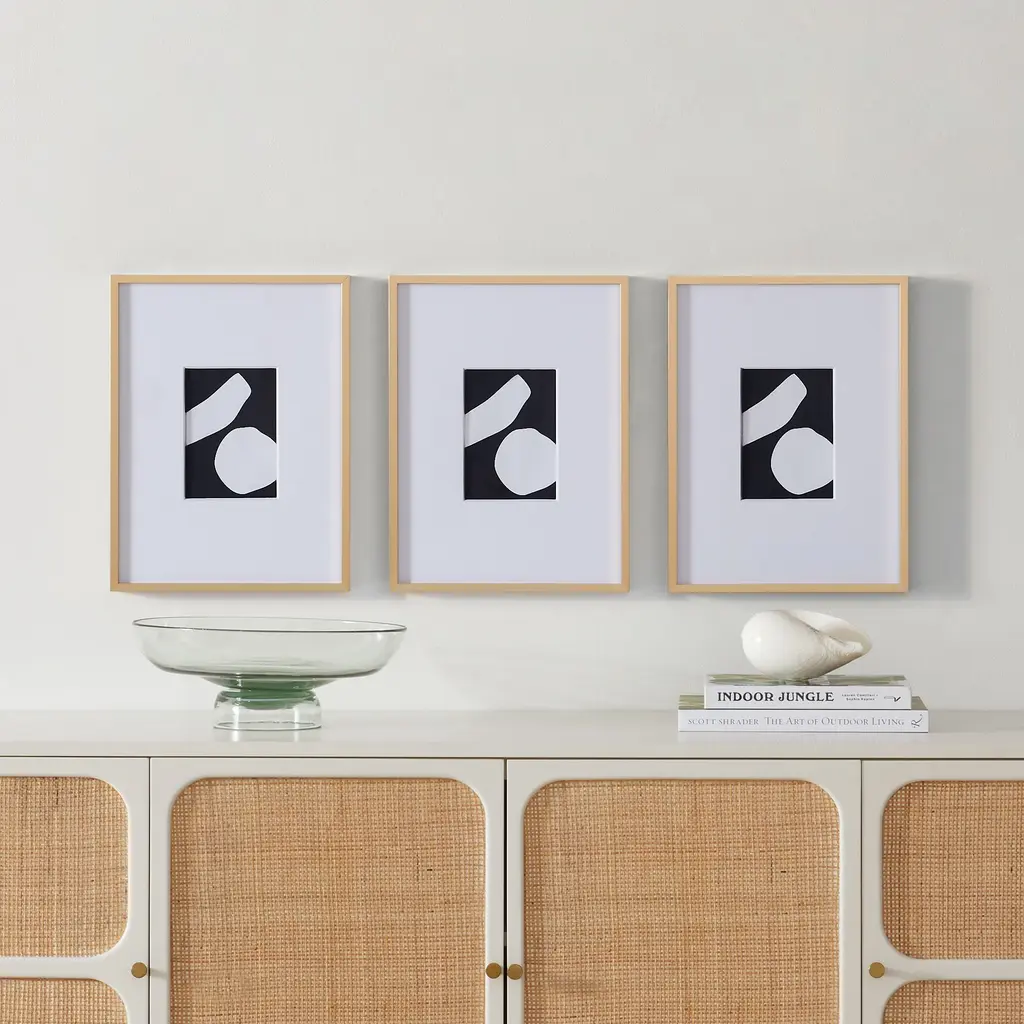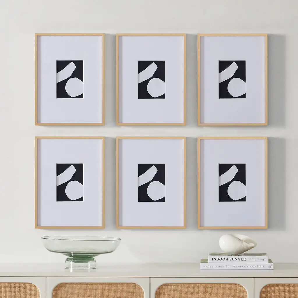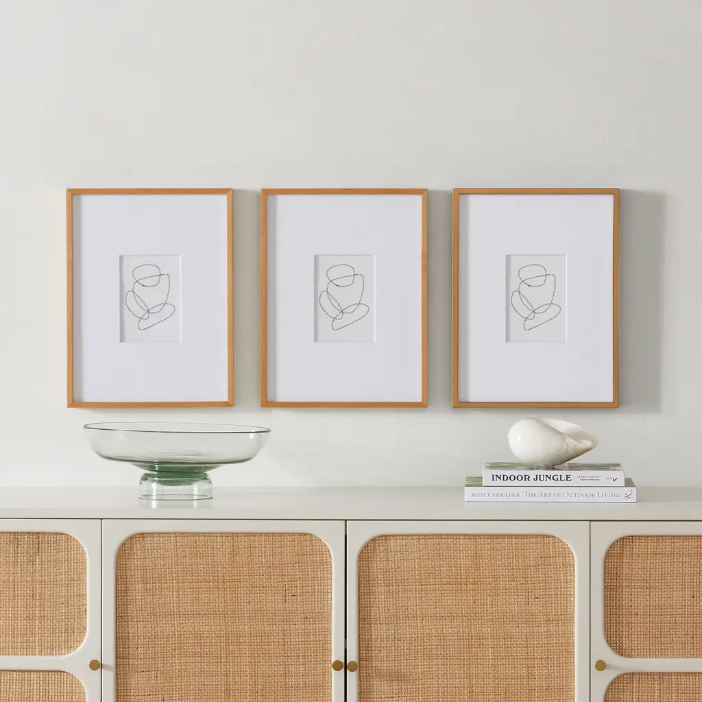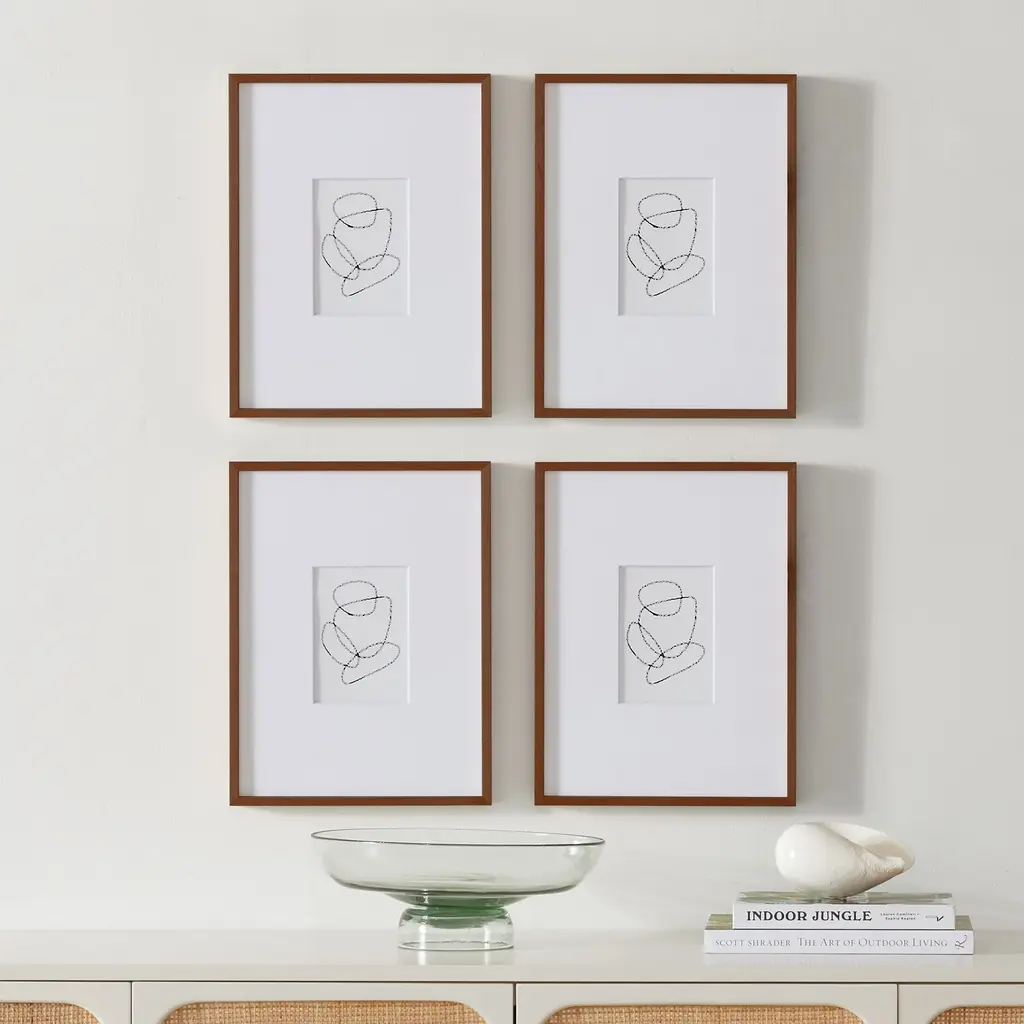 Available in a variety of set options to fit any piece of art. Quick and easy to hang with included D-rings. Includes different mats for more options. Tempered glass protects your photo or art piece.