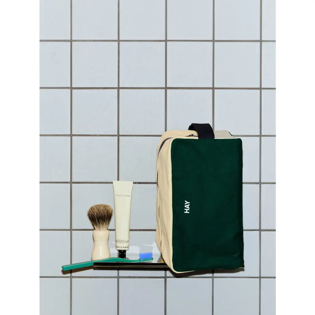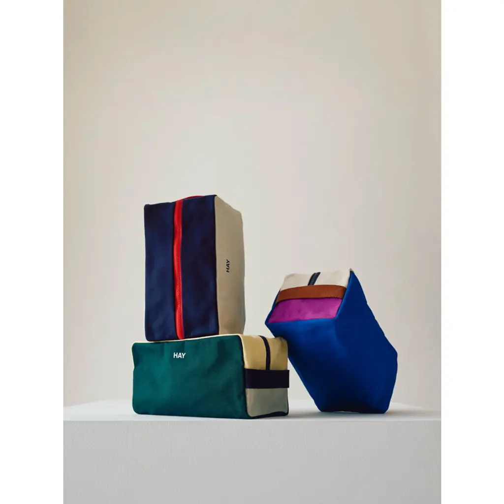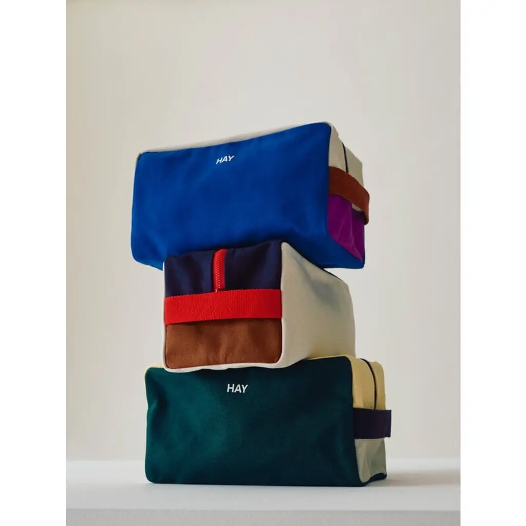 HAY’s Multi wash bag offers a stylish and spacious solution for storing cosmetics, toiletries and other essentials, whether at home or on the go. Made from organic cotton, this machine-washable toiletry bag features a sturdy carry handle on one side. The name of the Multi collection refers to its multicolored palette, where bright accent shades are boldly combined with earthy, more tranquil tones.