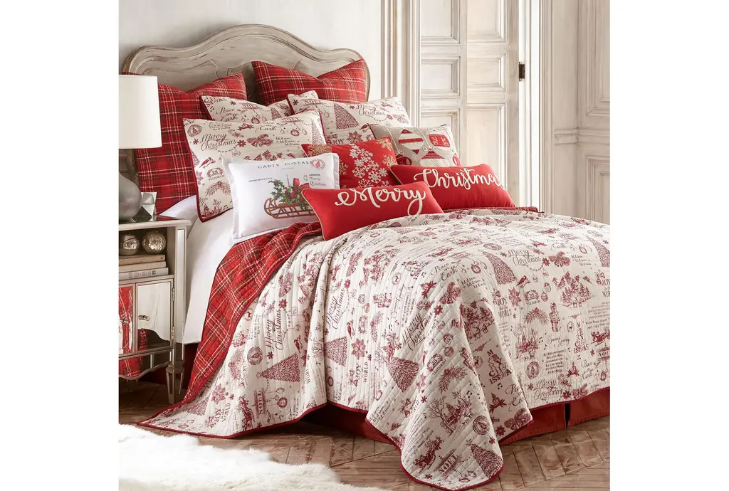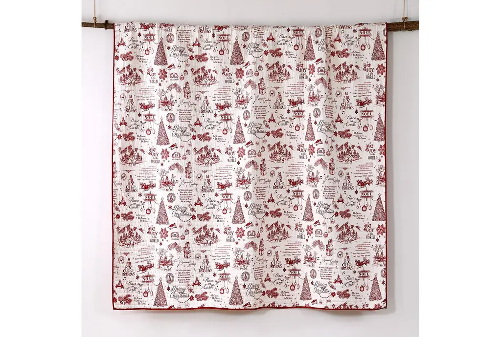 Multicolor Cotton Twin Quilt-2 Piece Set Reversible Red Holiday Scripts To Red Green Plaid | Quilts | Machine Washable
