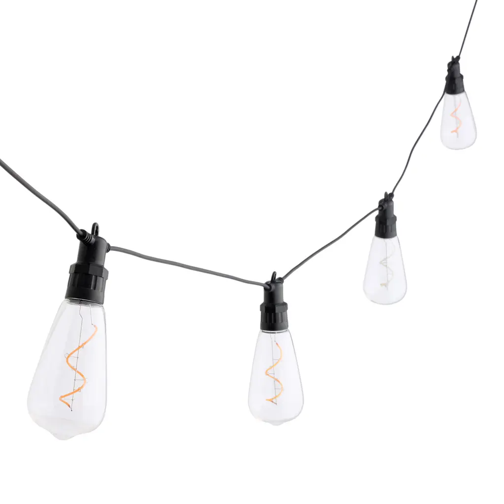 Featuring 10 vintage-style Edison bulbs in festive colors, our exclusive LED string lights are fashionable battery-operated accents for parties and everyday entertaining. Combining the retro flair of Edison light bulbs with decorative LED filaments, they glow with moody ambient light in lovely jewel tones. Affordable decorations for any setting, they're strung on flexible cord for easy arranging indoors or on your covered porch or balcony.