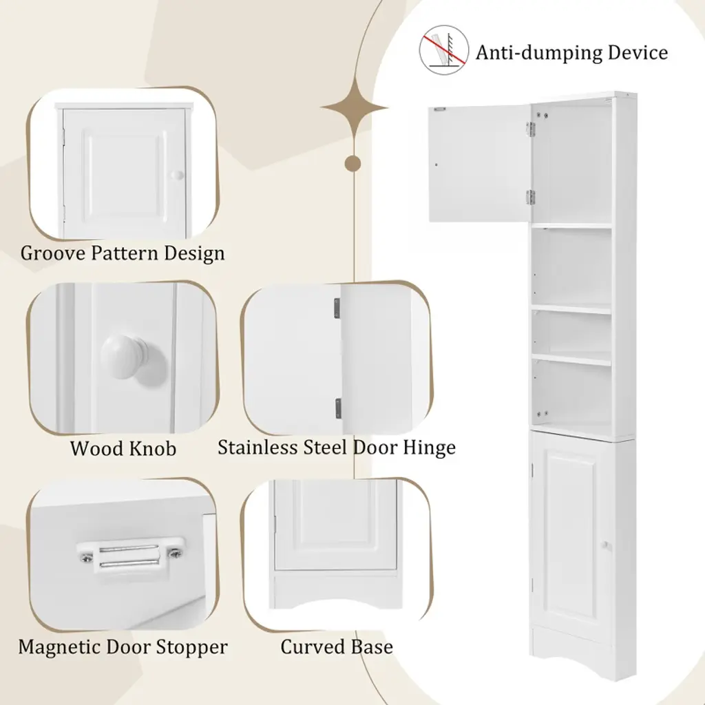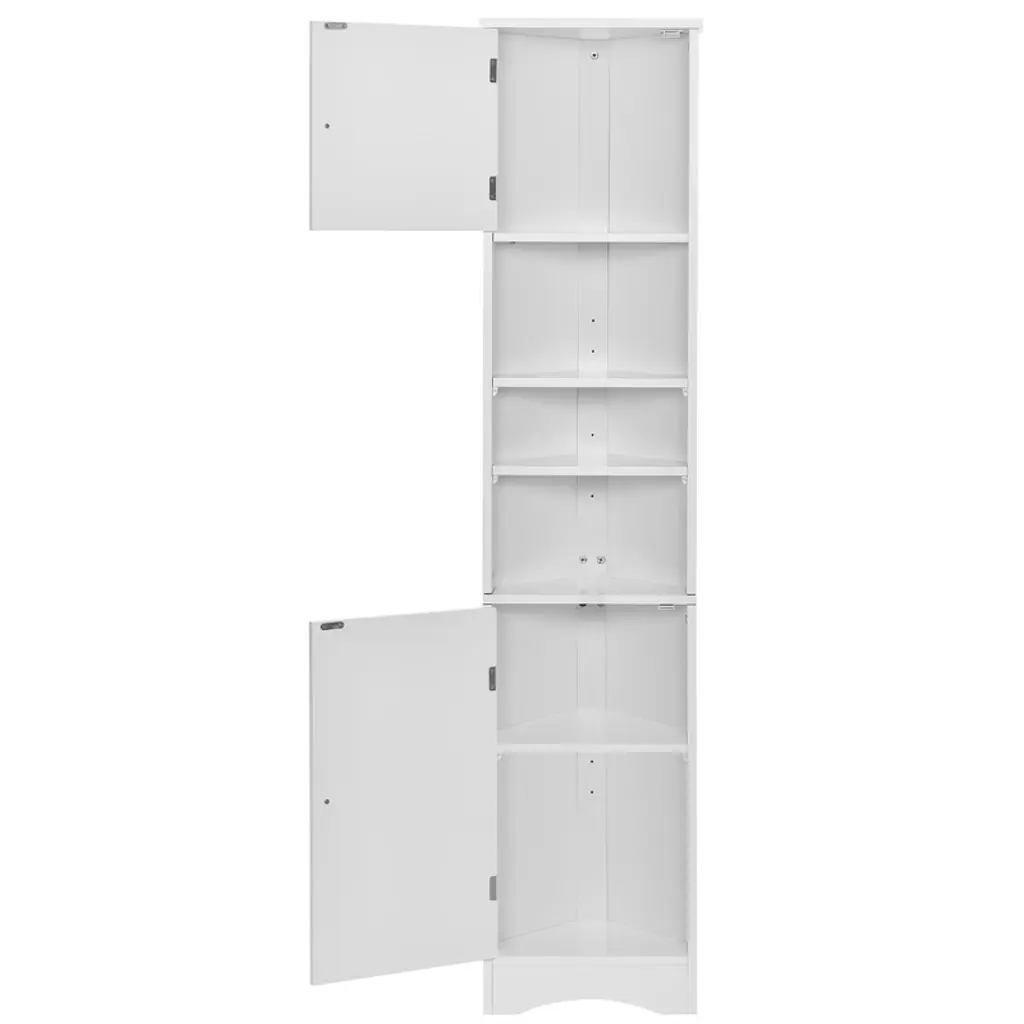 Multifunctional Tall Bathroom Corner Storage Cabinet With Two Doors, Adjustable Shelves And Open Shelves, White - Modernluxe