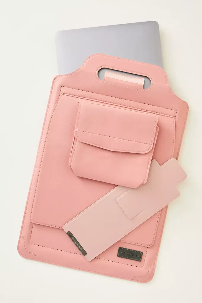 Introducing an incredible laptop bag that transforms into a portable workstation. Store your laptop in the faux-leather pouch, and then when you find the perfect place to set up for the day, simply transform your bag into a laptop stand and mouse pad. Sleek and functional, the sleeve is also ventilated to dissipate heat and keep your laptop cool. Plus, there's a built-in magnetic buckle on the outside to hold your phone and keys. Best of all, the skin-friendly fabric is waterproof and buttery-smooth, and looks great, too.