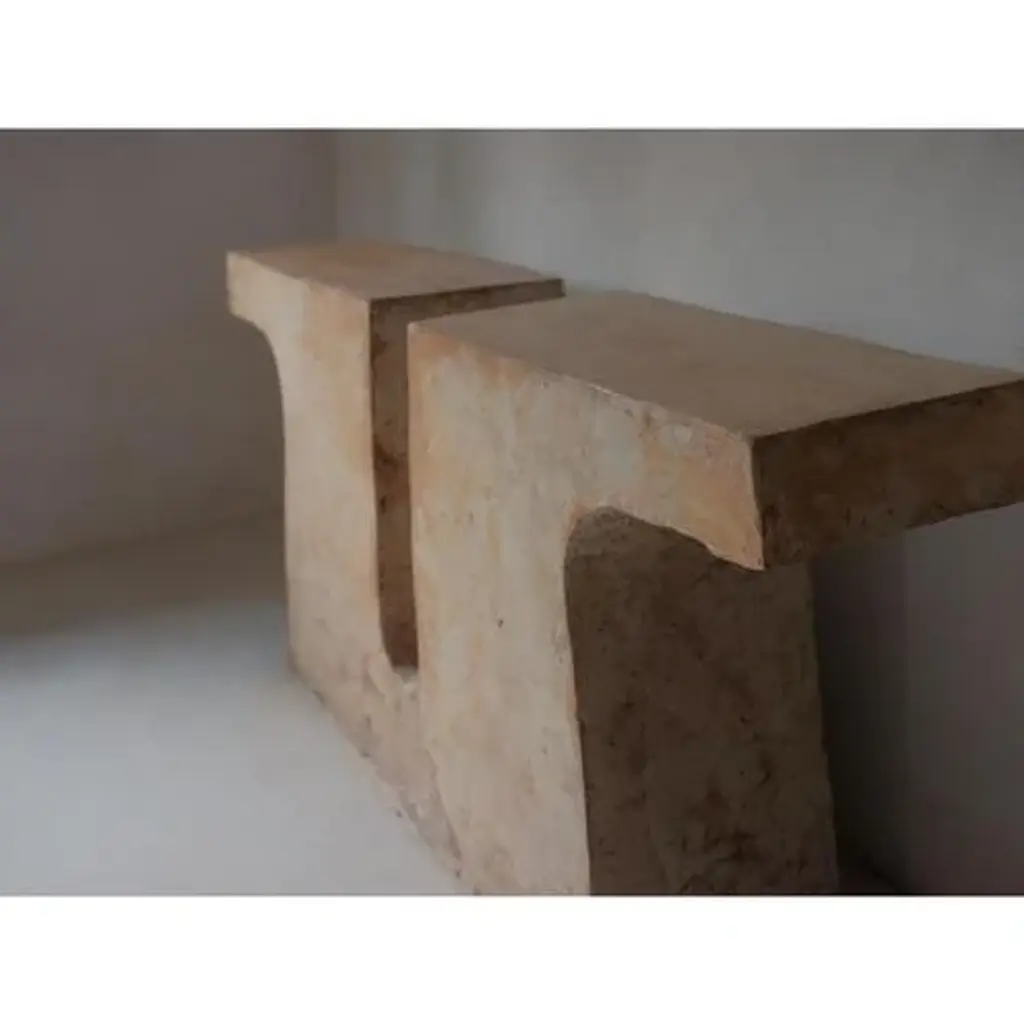 Munk, unique console in hemp crete by lucas tyra morten edition: limited edition of 9 dimensions: w 172 x d 40 x h 85 cm material: hemp crete, coffee/tee dyed, waxed with pigmented linseed oil can be made in a light or dark version (either brown/black melange or light brown/beige melange) a monumental presence shaped by restraint. Munk builds on the same visual language as nunna, extending its proportions and deepening its architectural weight. With its bridging form and grounded stance, it recalls ancient markers — timeless structures that gather patina and grace through use and time. Casted in hempcrete, pigmented with blends of coffee and tea, and sealed with tinted linseed oil wax, each edition varies in surface and tone. this piece is attributed to the mentioned designer/maker. It has no attribution mark and no official proof of authenticity, however it is well documented in design history. I take full responsibility for any authenticity issues arising from misattribution