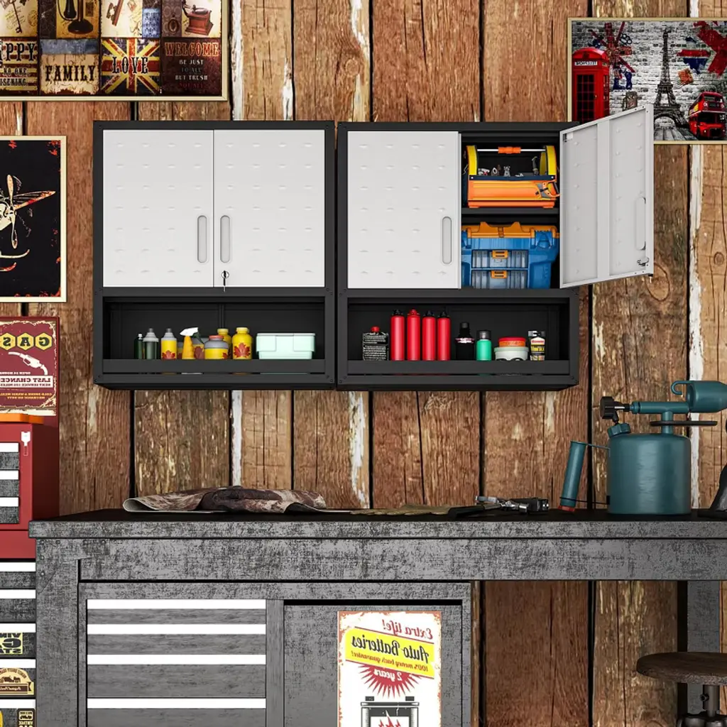 Munora - 2-door Wall-mounted Garage Cabinet With Adjustable Shelves - Lockable, Rust-resistant - Black/grey