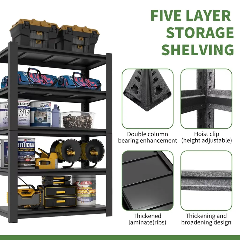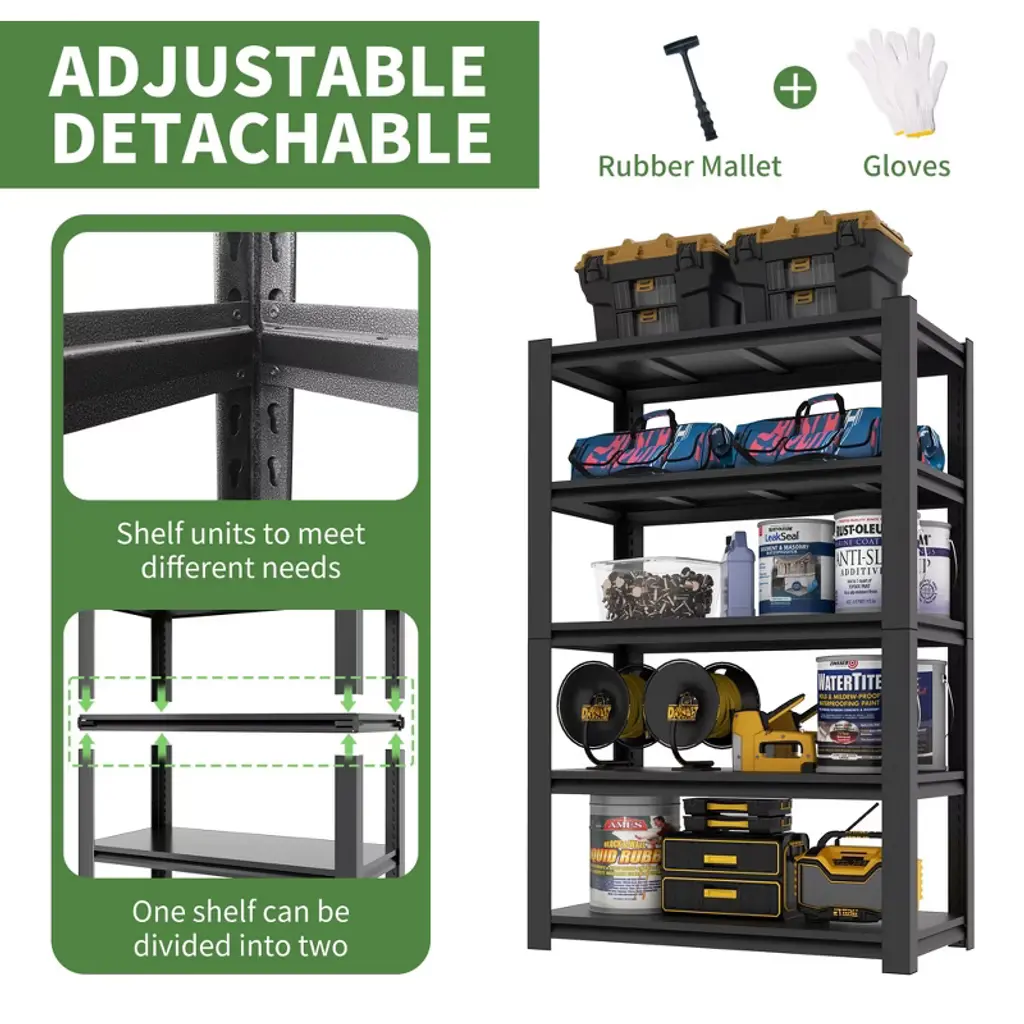 This heavy-duty storage shelves are the ultimate answer to your organization needs. With a whopping 2,500 lbs total load capacity and adjustable 5-layer design, these shelves are built to last. Crafted from industrial-grade cold-rolled steel with rust-resistant powder coating, they’re perfect for any space—garage, basement, workshop, or kitchen. Quick and tool-free assembly means you can start organizing in no time!