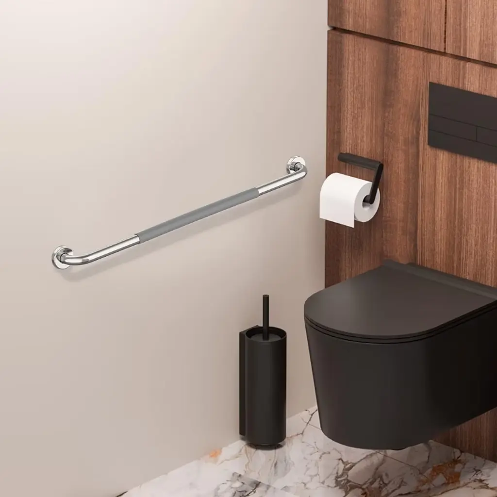Munzong 32in Chrome Shower Grab Bar W/ Gray Anti-slip Rubber Grip 2-pack