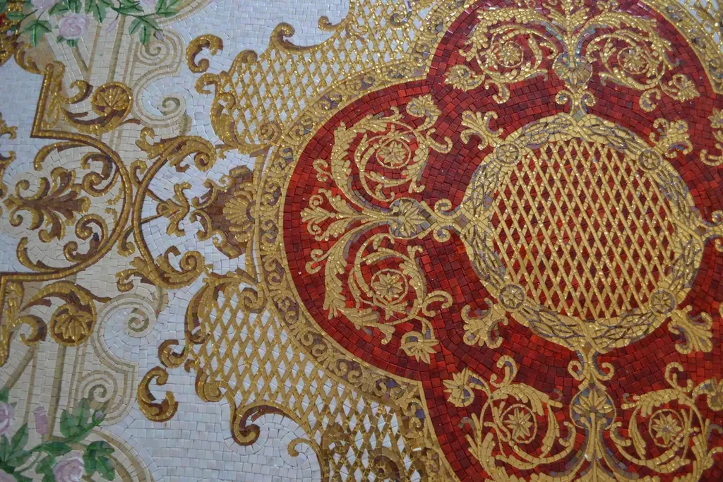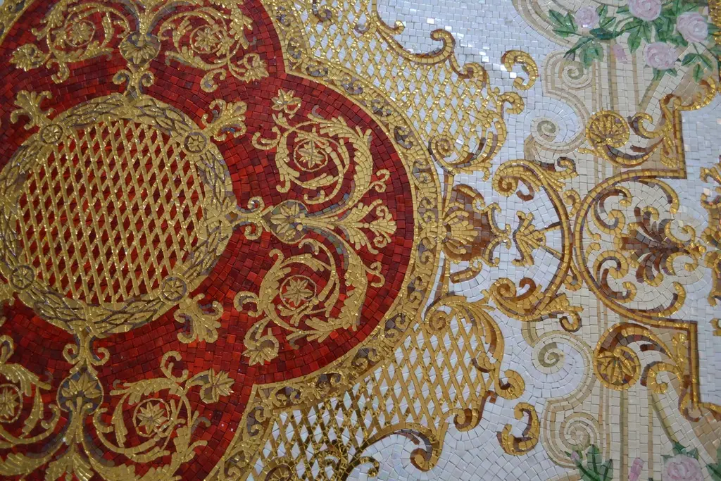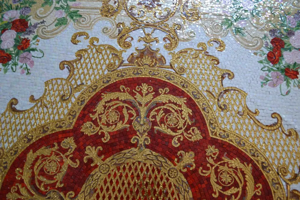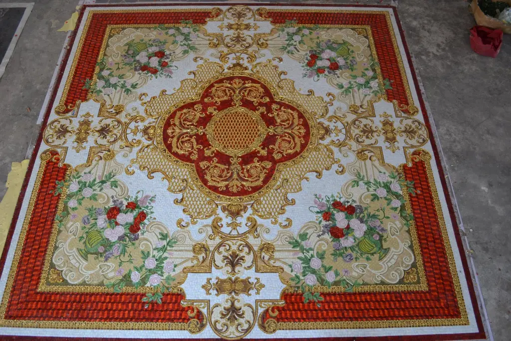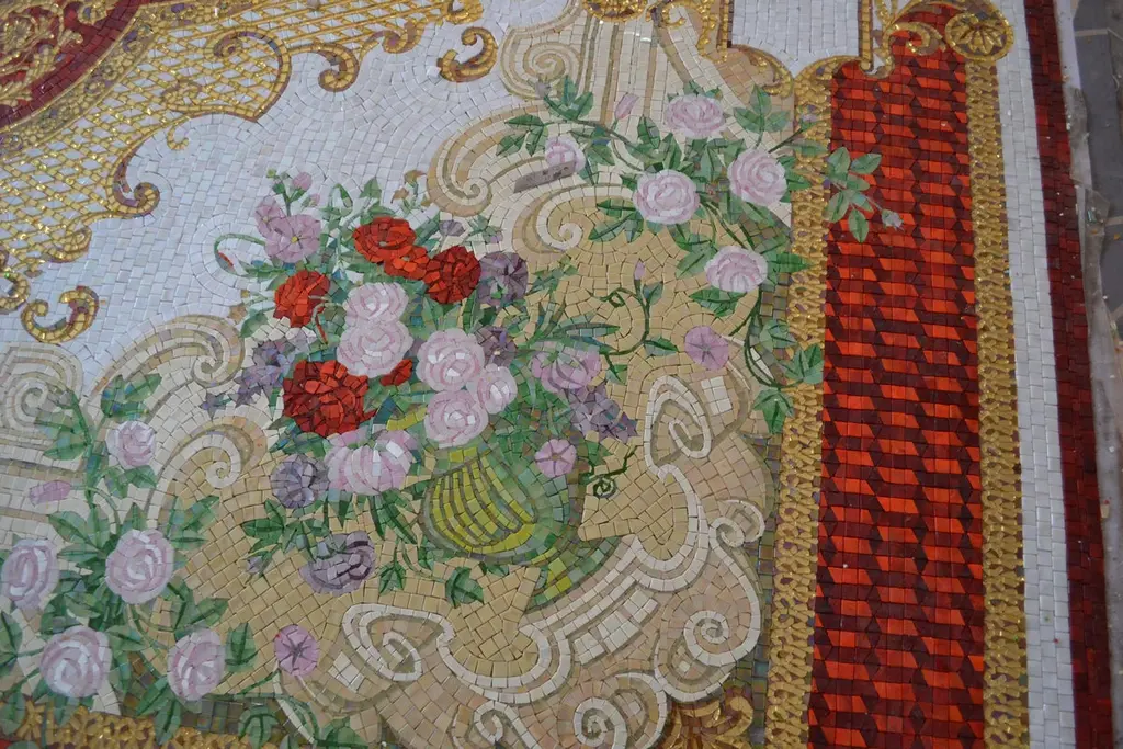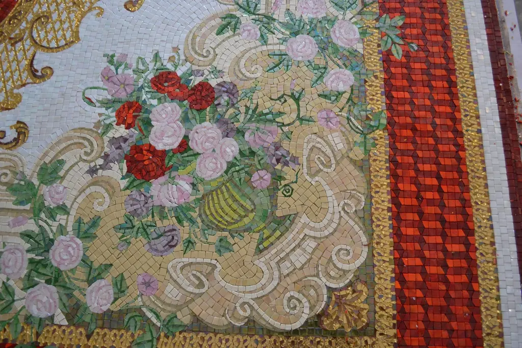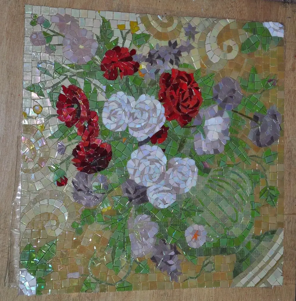 Mural Glass Mosaic In Flower Design, Neoclassical Style