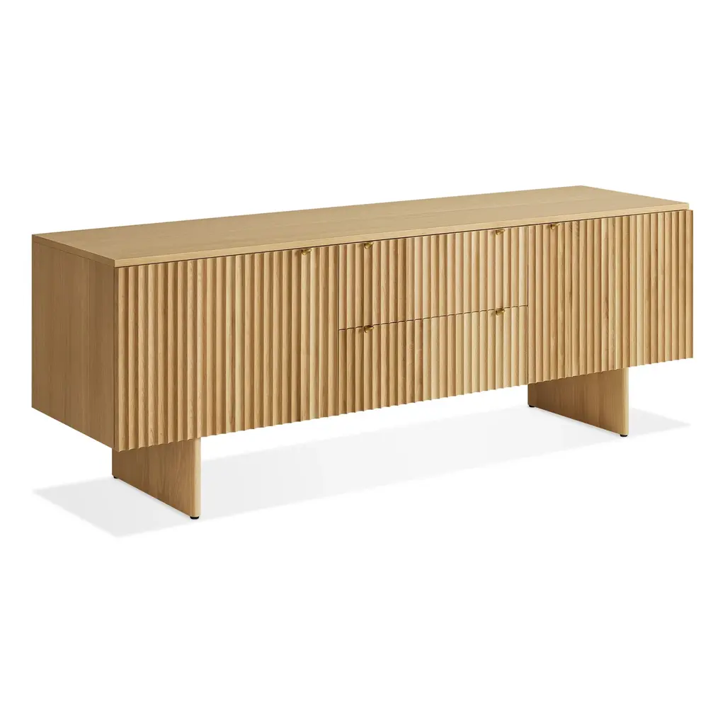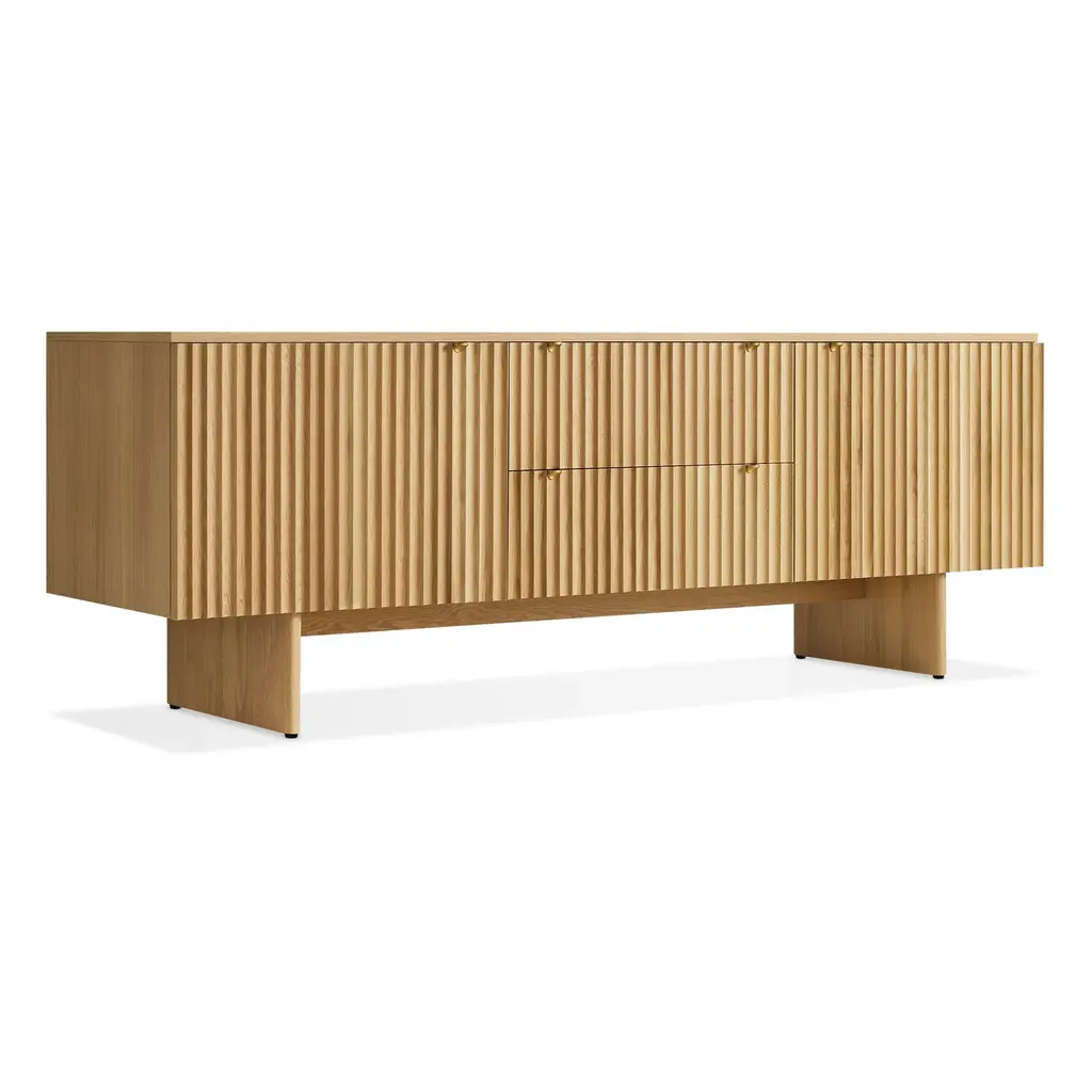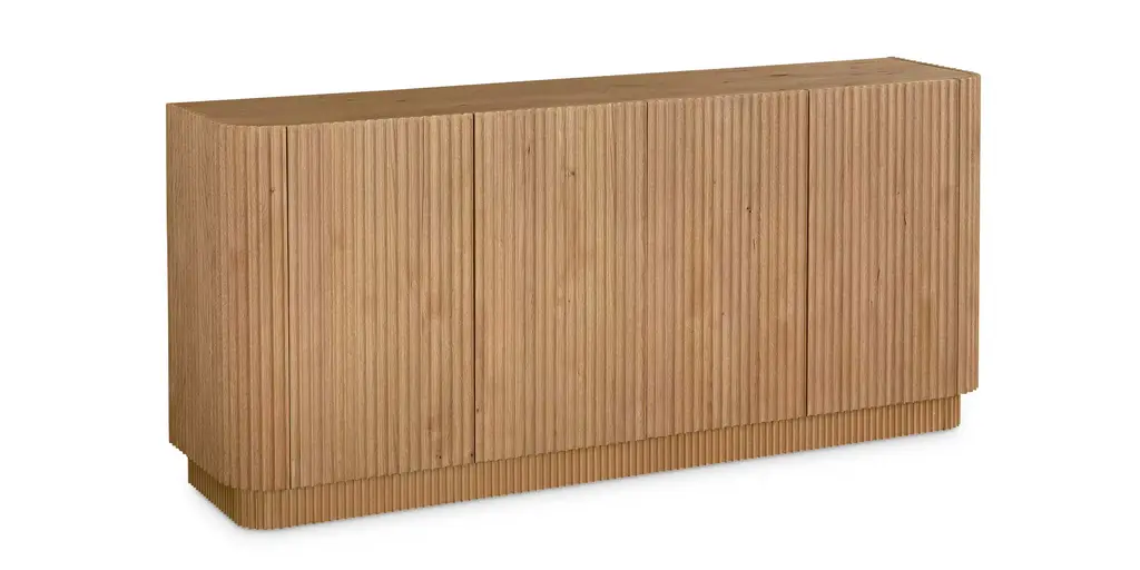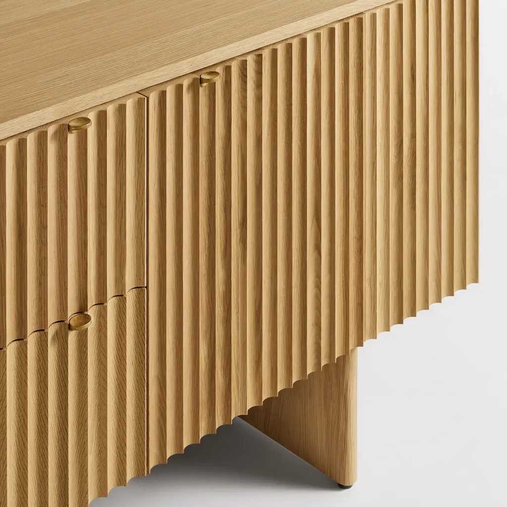 Murmur puts refined elegance front and center. Fluted wood creates a continuous pattern of textural delight. Small sandcast brass pulls nest in the grooves for subtle sophistication. Convex legs and soft-close drawers complete the pretty picture. Available in a whole slew of equally stunning shapes and sizes