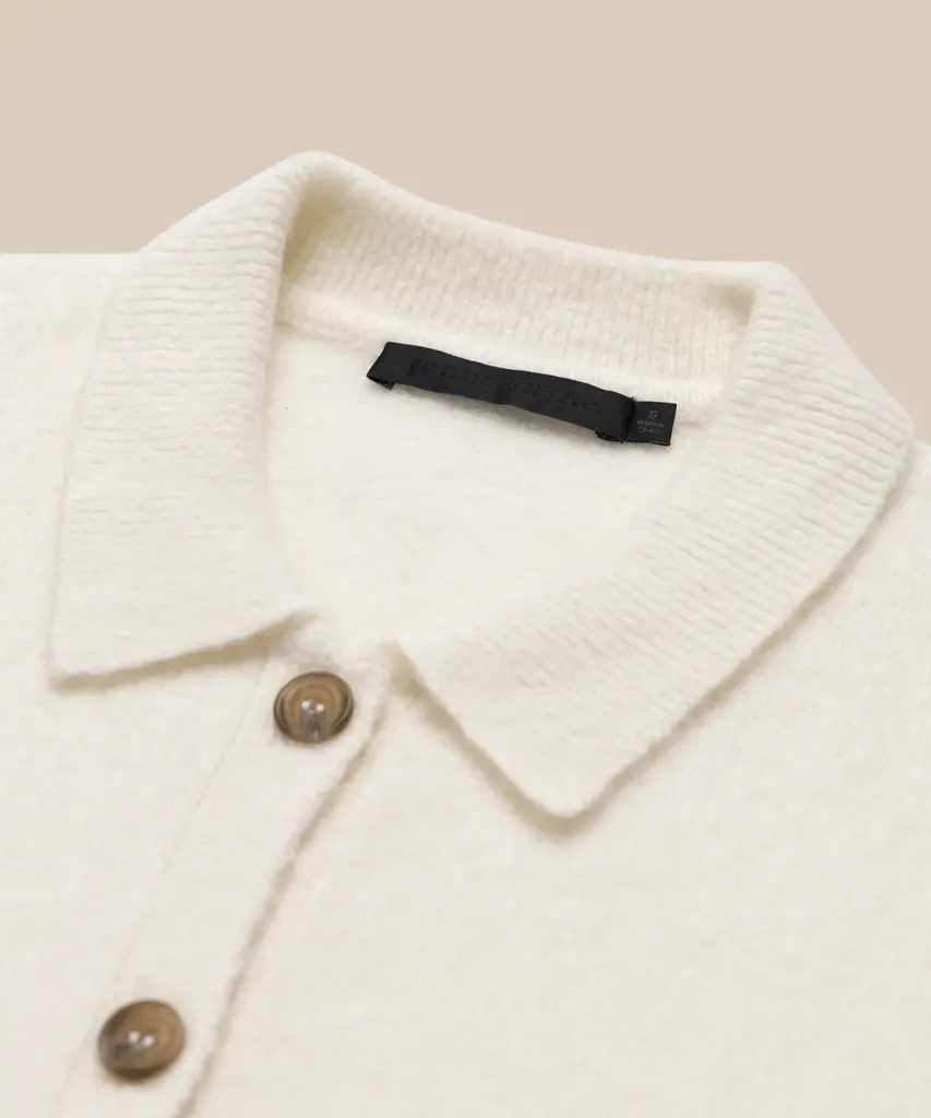 Murphy Cardigan Ivory This ultra-soft and buttoned-up knit combines comfort with luxury effortlessly. 80% cashmere, 18% polyamide, 2% elastane. Made in China. Classic, fitted sweater with collar.