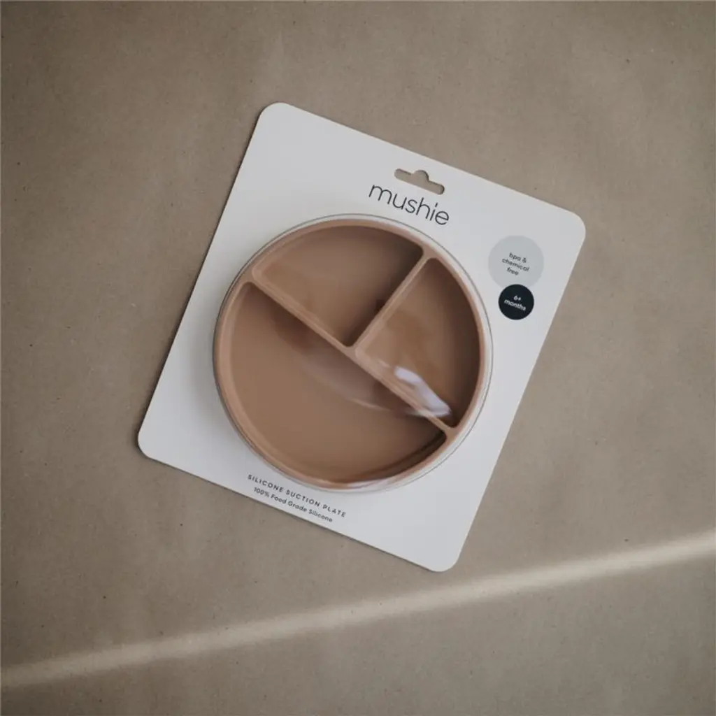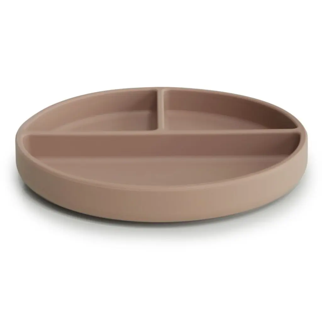 The clean curves and elegant hue of this silicone plate belies a purely practical feature: a suction that keeps the divided plate in place as little ones master their dining skills. Designed to stay securely on the high chair or table, the suction plate won't be tossed onto the floor by tiny diners more interested in exploring the wonders of physics than eating. The matte finish and muted, natural shade of brown fit in perfectly with our artisanal ceramics to set a modern table for the whole family.