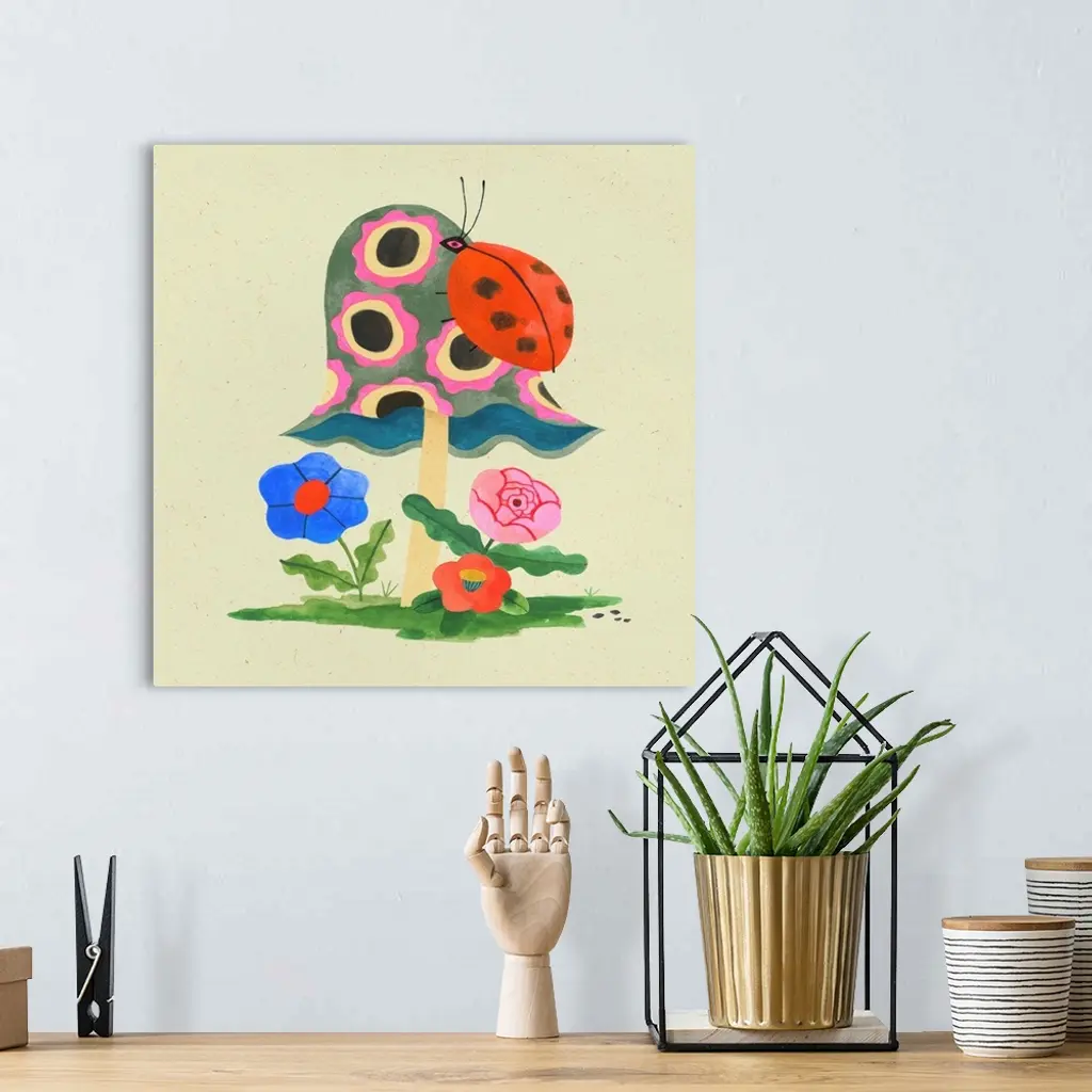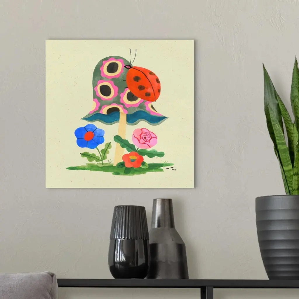Mushroom Ladybug wall art for home and office decor. Discover canvas art prints, photos, mural, big canvas art and framed wall art in GreatBigCanvas.com's varied collections.