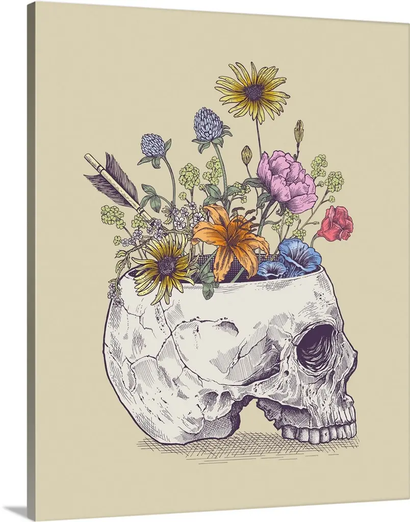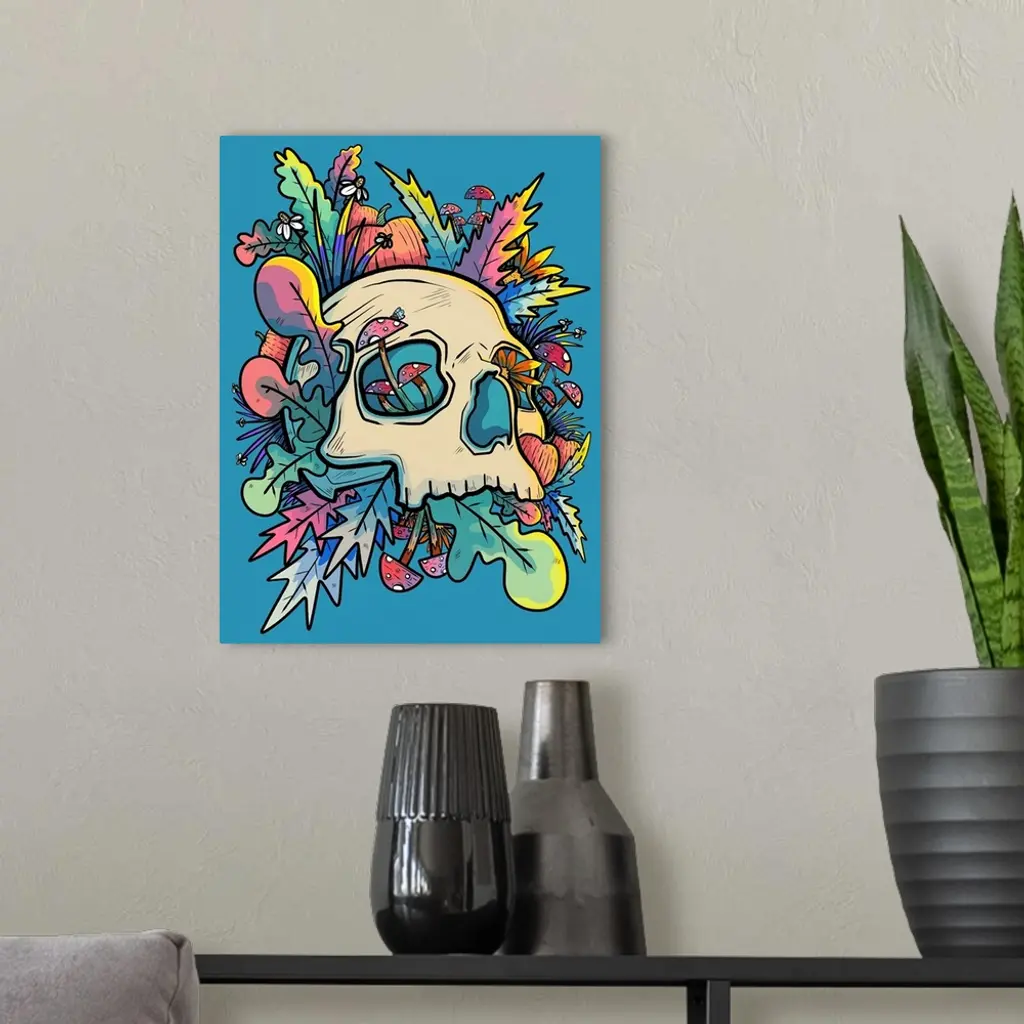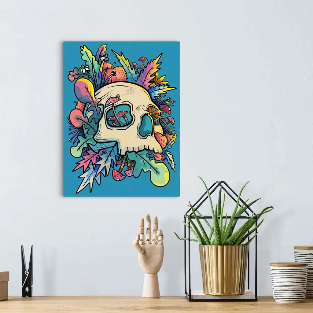 Mushrooms And The Colorful Skull wall art for home and office decor. Discover canvas art prints, photos, mural, big canvas art and framed wall art in GreatBigCanvas.com's varied collections.