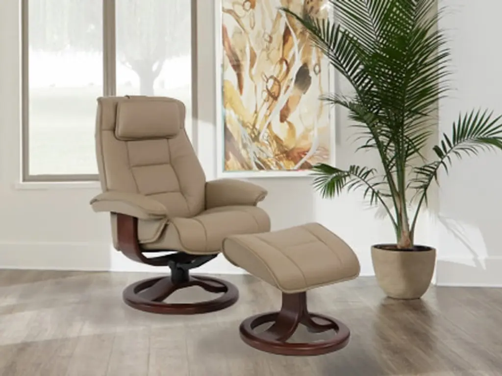 The Fjords Mustang recliner comes with a removable head pillow for optimum comfort. Relax in the plush, soft back cushions while being supported by the Fjords Active Release System, which synchronizes the back with your movements in order to keep your neck supported. The Fjords Mustang recliner and ottoman with variable adjustment provides continuous support and by means of our Fjords® Active Release System™ the neck angle is automatically adjusted while you recline, with bases which have a 360° swivel. The base is produced in laminated, stained wood which gives it an elegant character. Available in all our leathers and select fabrics, Mustang features a moveable neck pillow. The chair is available in two sizes, small and large. Fjords has a massive collection of recliners with matching ottomans. Check out their Nordic sofa too! INSPIRED BY NORWEGIAN NATURE SINCE 1941 Fjords has designed and manufactured furniture for 70 years. The two brothers Otto and at Mindor Hjellegjerde started it all in the fjord village Sykkylven in Norway In 1946, the third brother, Ingvar, joined the business. With a fierce dedication and great skill, the brothers managed to build a business that has become one of the largest furniture companies in Norway. They have grown from a small family business in a basement to what they are today, a company spread over four continents. QUALITY AND CRAFTSMANSHIP Through all these years, they have produced comfortable quality furniture based on good craftsmanship and Norwegian design. We are proud that the furniture from Fjords are produced with the same dedication and skill as in 1941. INSPIRATION What is it that makes Fjords different from other furniture manufacturers elsewhere in the world? Is it the contrasts landscape that surrounds them, where the endless motion of the ocean meets the strength of the mountains? Or is it the light in Norway – constantly changing – sometimes light, sometimes dark, unable to exist without the other? Both yes and no. The nature around them is robust and what they make is solid. The nature around them is generous – their furniture is made for generous comfort. COLORS & MATERIALS Choosing the right fabric or leather on a piece of furniture should be logical and exciting. Therefore, Fjords has put together a large number of modern fabrics, leathers and materials within the corresponding colour nuances that will make it easier to be able to make your individual choices. All fabrics, leather and material samples are available to be seen in our showroom.