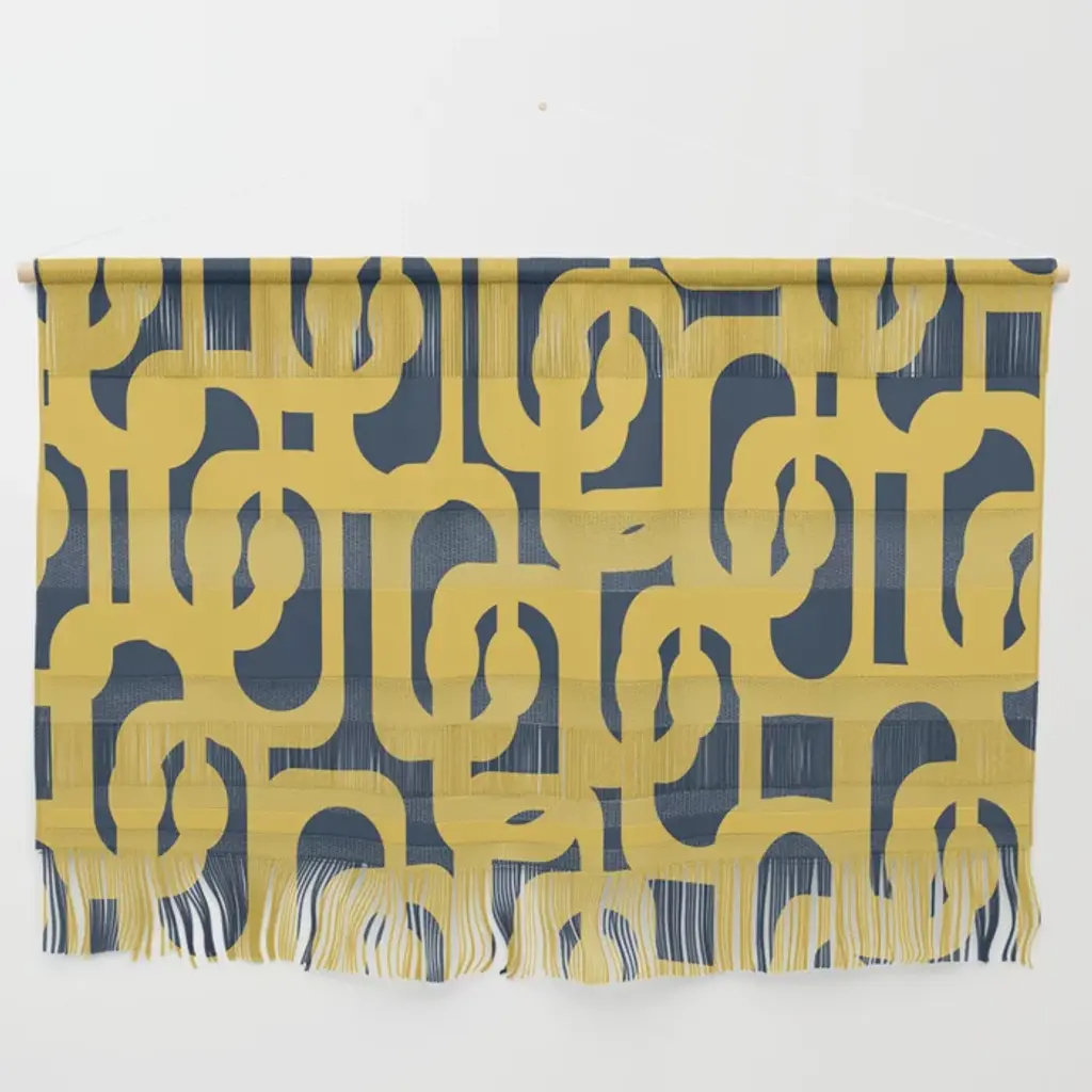 Mustard Yellow And White Mid-Century Modern Loop Pattern Wall Hanging